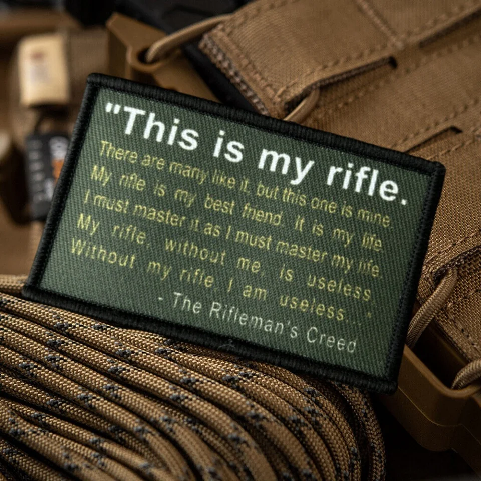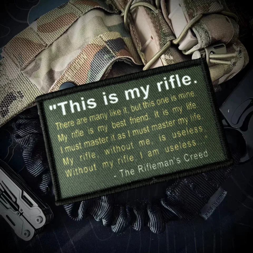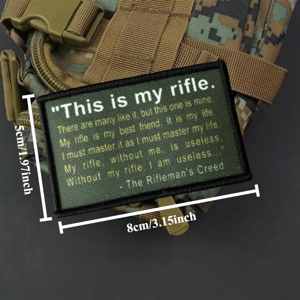 Parche impreso The Rifleman's Creed Morale, insignia táctica militar, brazalete de EE. UU., pegatinas para mochila con gancho y bucle