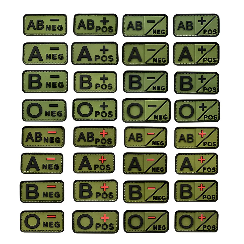 Parche de insignia del grupo de sangre 3D de 5x2,5 CM A + B + AB + O + A-B- AB- O-embblemas de goma de PVC insignias tácticas parches con gancho