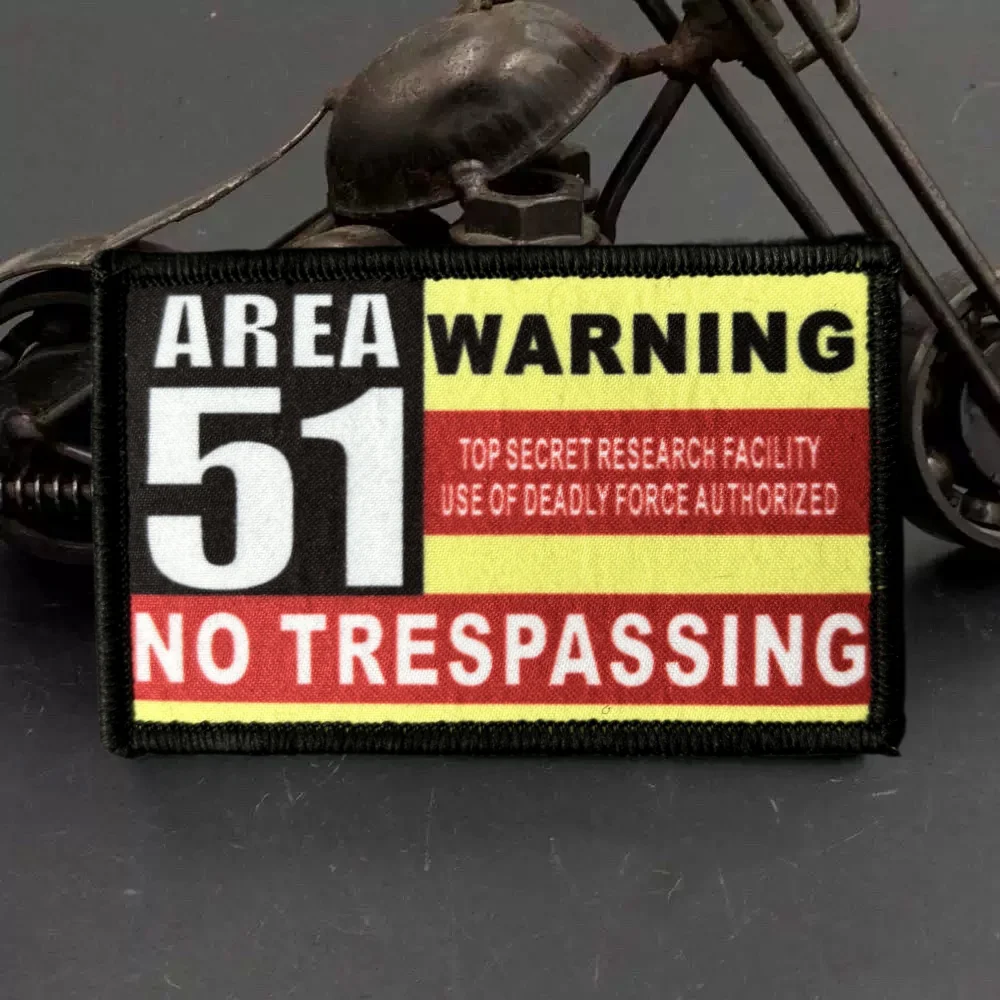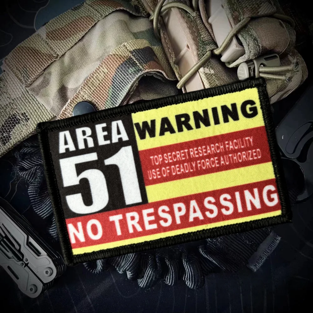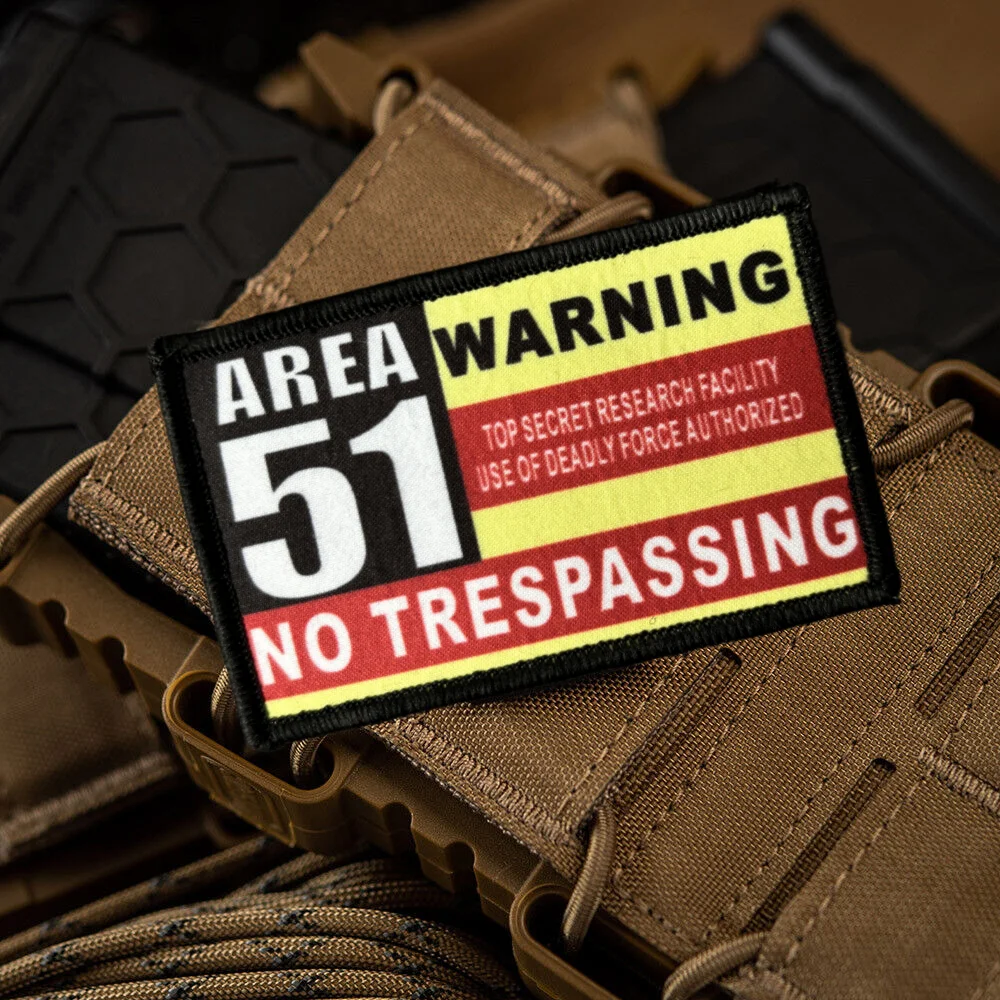 Parche de insignia de moral del Área 51, parche táctico divertido con gancho y bucle, brazalete estampado militar de EE. UU., pegatinas para ropa y mochila