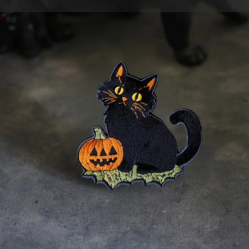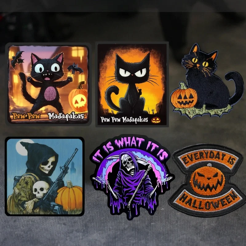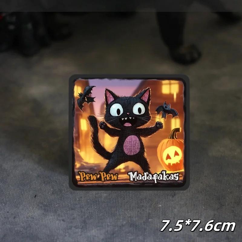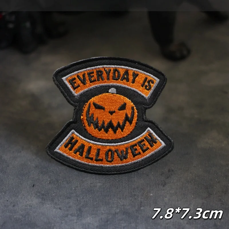 Insignia de moral de calabaza de gato de Halloween, parche bordado divertido, emblema de gancho y bucle en ropa, scheletro, fantasma, brazalete, pegatinas para mochila