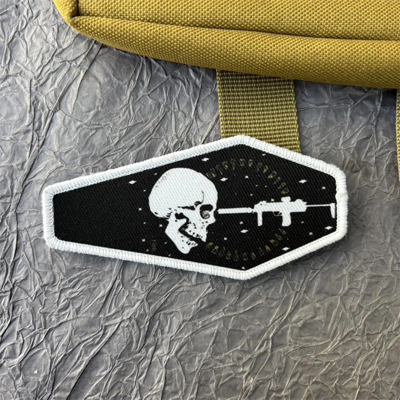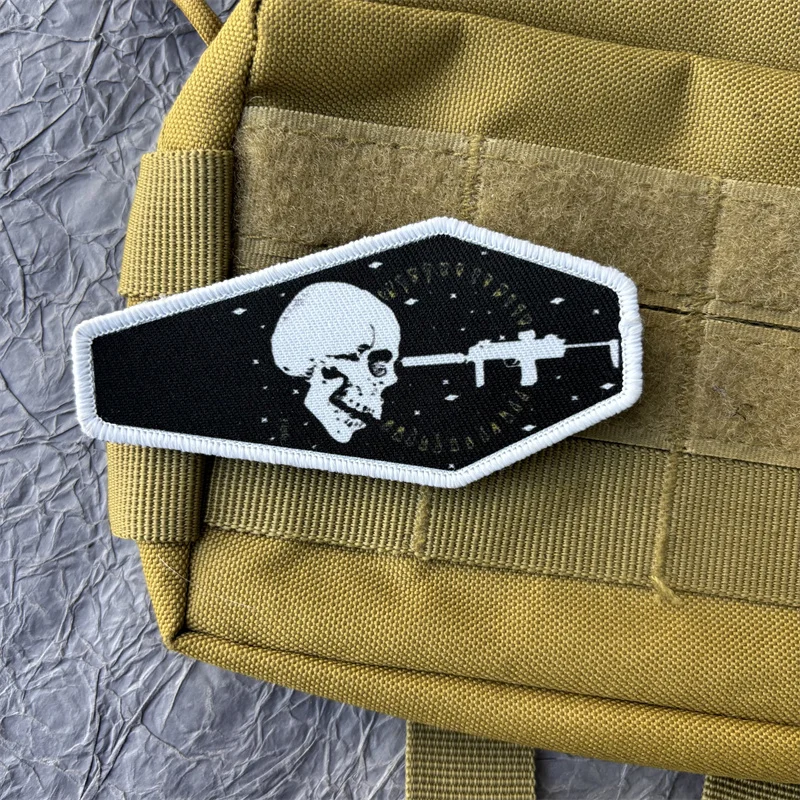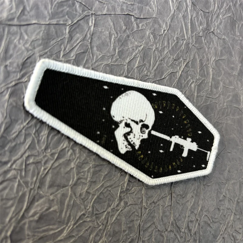 Parche de insignia de moral de calavera de NIEBLA en ropa, brazalete militar táctico, parches de gancho y bucle, mochila, accesorios para sombrero, pegatinas