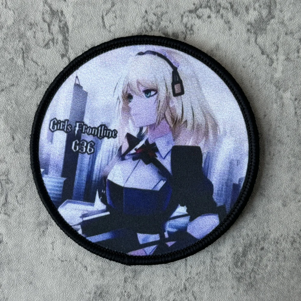 Parche de insignia de moral de Chica de Anime, brazalete estampado de primera línea de chica militar táctica, parche de gancho y bucle de archivo azul, pegatinas para mochila