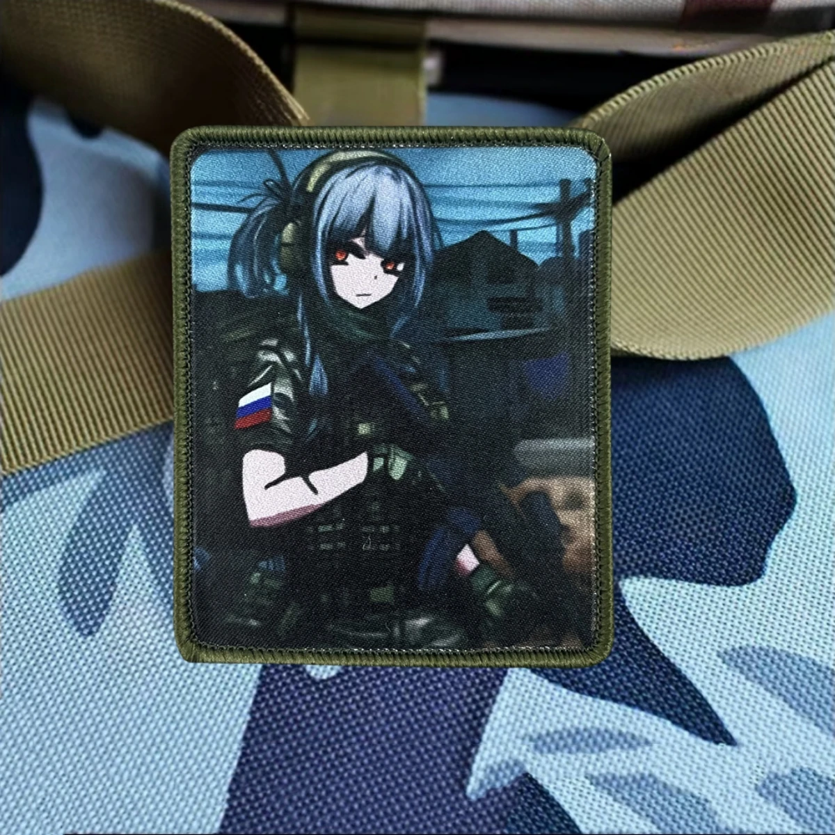 Parche con insignia de moral para chica de Anime Chevron ruso, brazalete militar táctico, parches de gancho y bucle estampados, pegatina para mochila de ropa