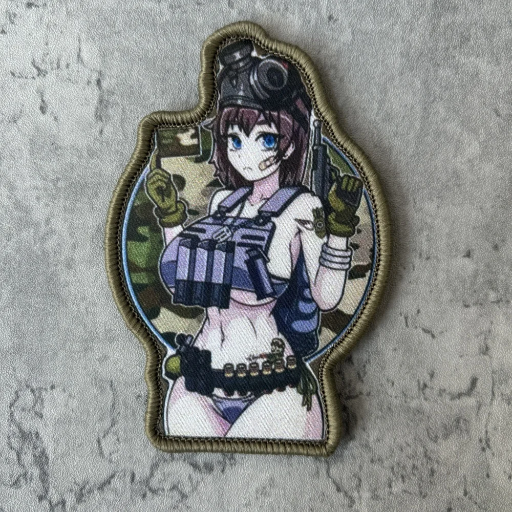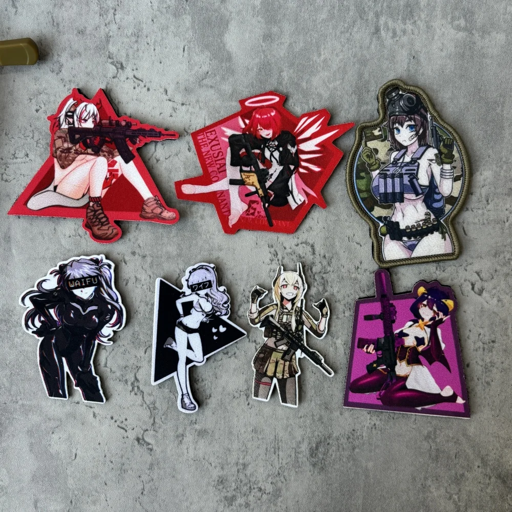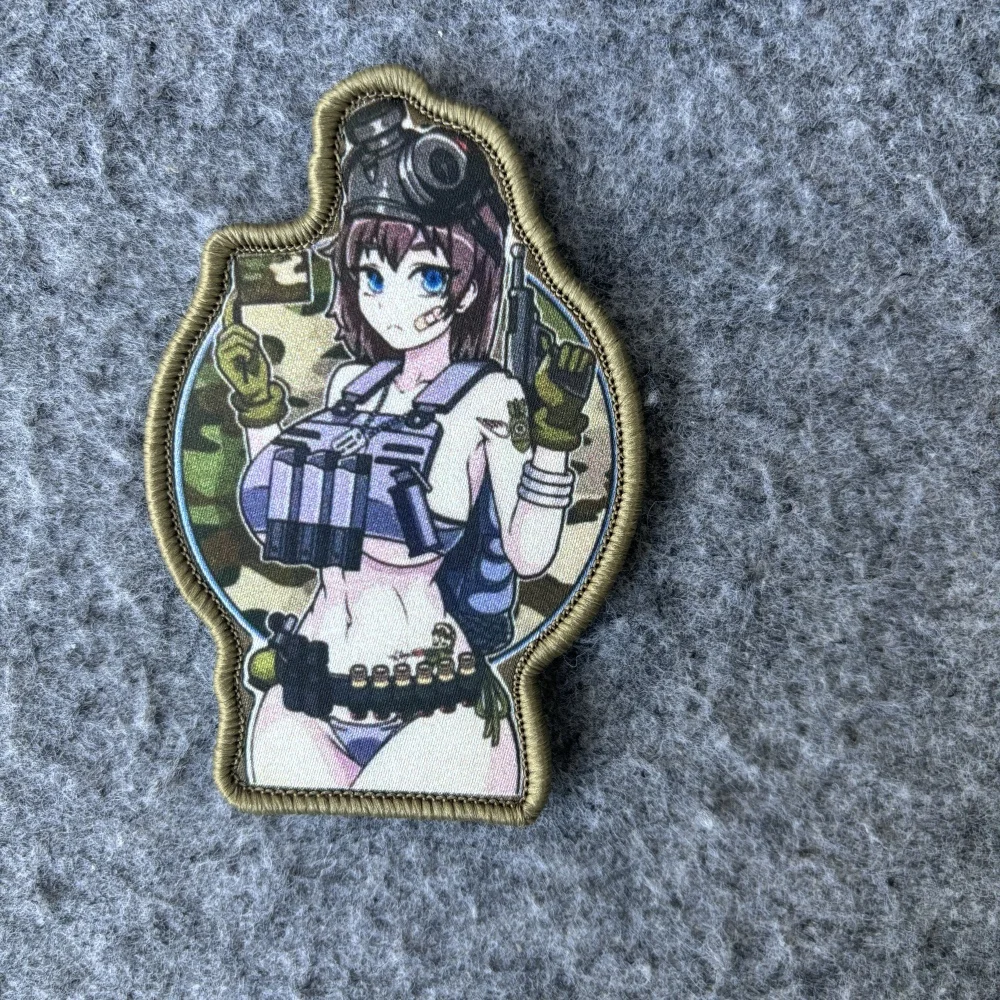 Parche de insignia de moral de Chica de Anime, pistola militar táctica, brazalete impreso para niñas, parche de gancho y bucle, pegatinas para mochila