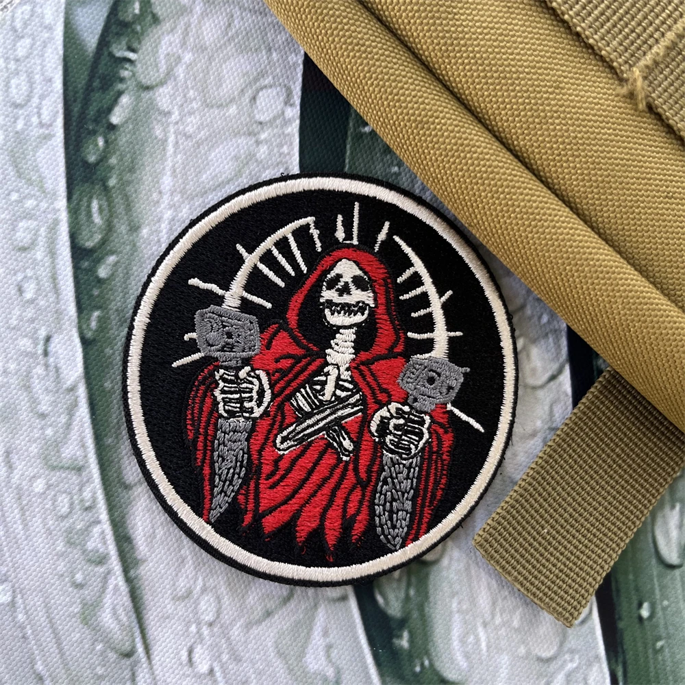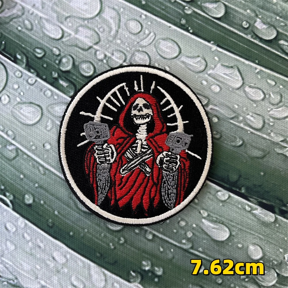 Parche de insignia de moral de esqueleto, parches bordados, pegatinas tácticas de gancho y bucle, preparar para disparar con una pistola