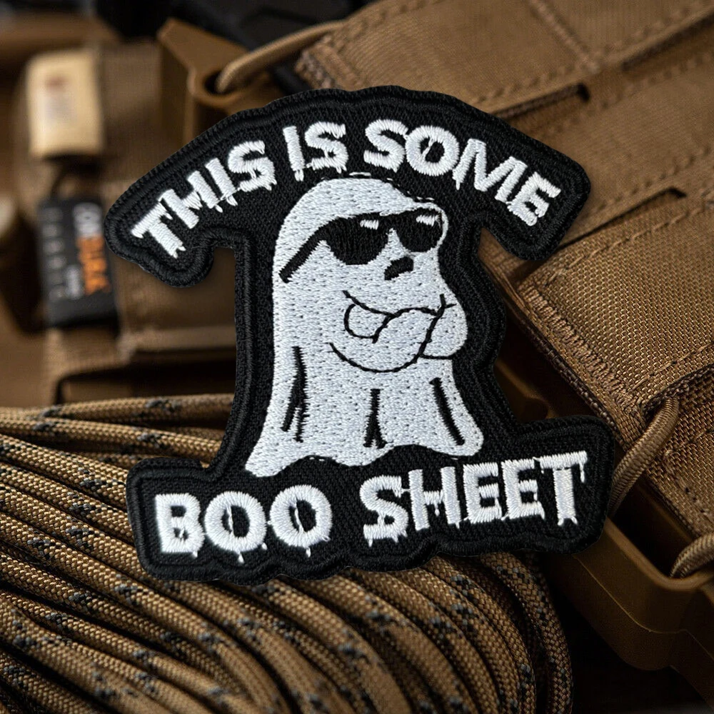 Parche de insignia de moral fantasma divertido, este es un poco, hoja de Boo, parche bordado con gancho y bucle, brazalete militar, pegatinas tácticas para mochila
