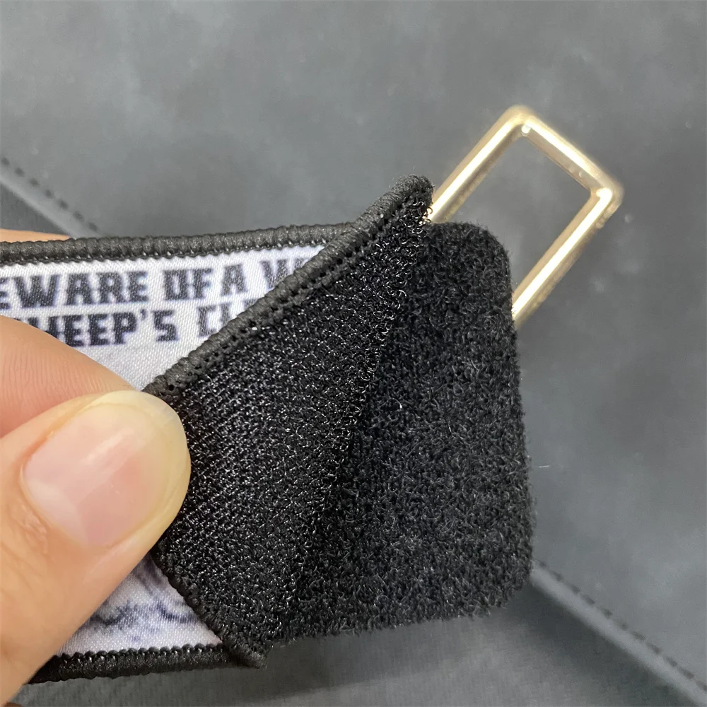4. Parte posterior: Si se trata de un gancho y bucle, pégalo directamente en la superficie del bucle. Por favor, planchelo en su ropa con hierro si hay pegamento en la parte posterior. También puede coser algunas puntadas simples después del planchado si puede, lo hace más firme y duradero. Si no tiene pegamento, cóselo en su ropa.