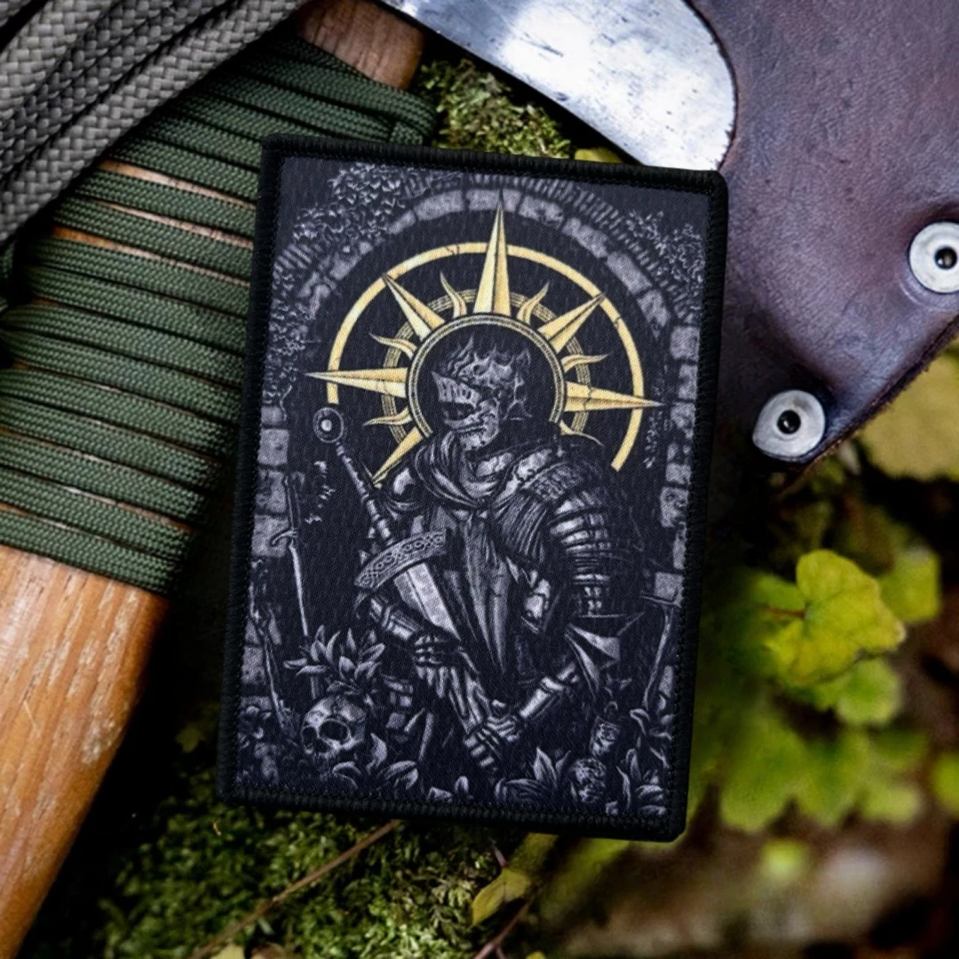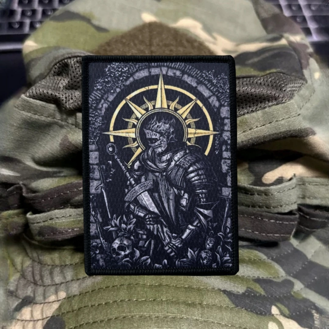 Parche de insignia de moral táctica de caballero esqueleto de Dark Souls, pegatina para mochila del ejército militar, parches de gancho y bucle impresos para ropa