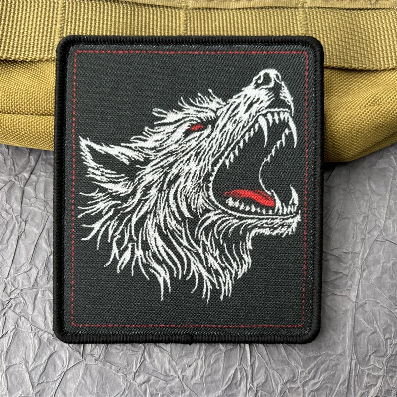 Insignia de moral táctica con cabeza de lobo, parche con gancho y bucle, accesorios militares, parches impresos, pegatinas para mochila, brazalete