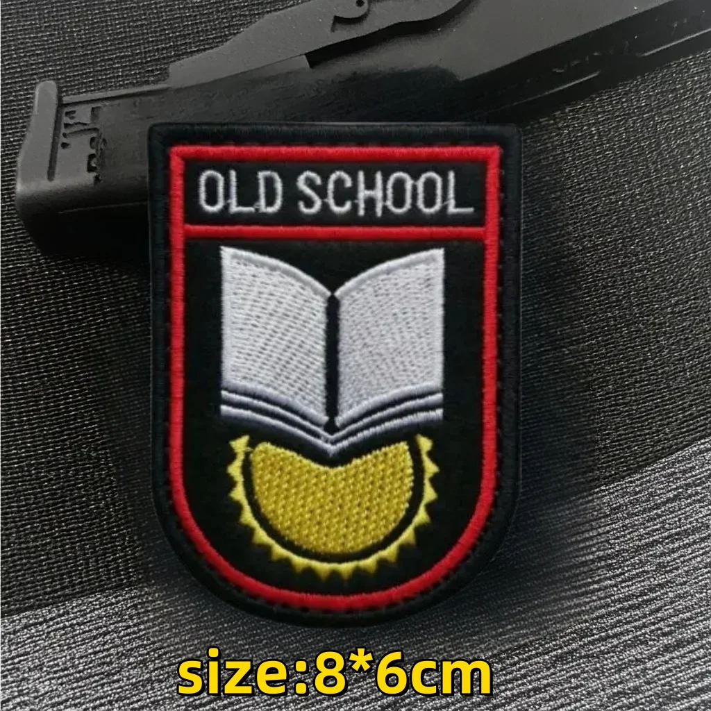 Parche de insignia de moral táctica de "Old School", ropa bordada, gancho y lazo, brazalete, accesorios de mochila militar, pegatinas