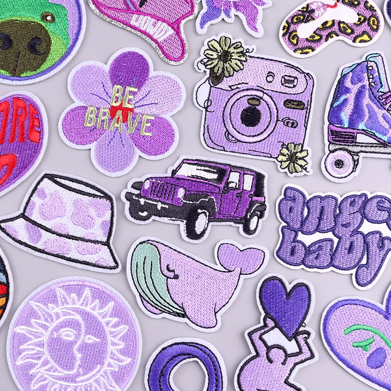 Parche de serie púrpura, parches bordados de hierro para ropa, parches termoadhesivos en ropa, parche de letras de dibujos animados para ropa