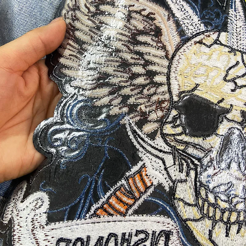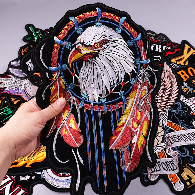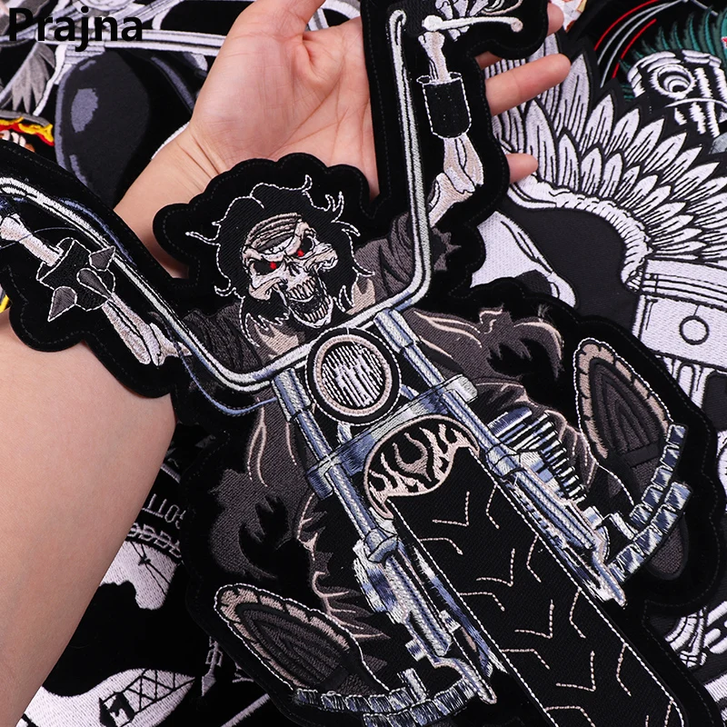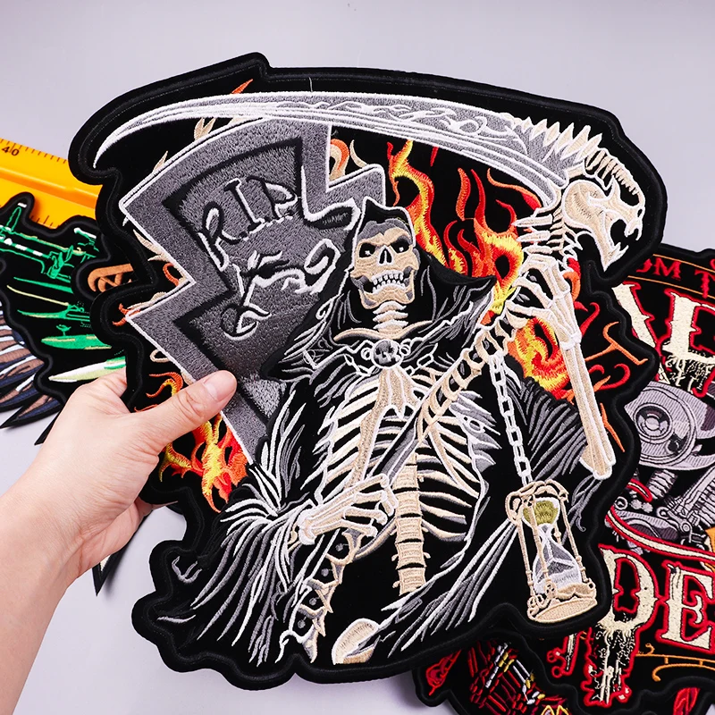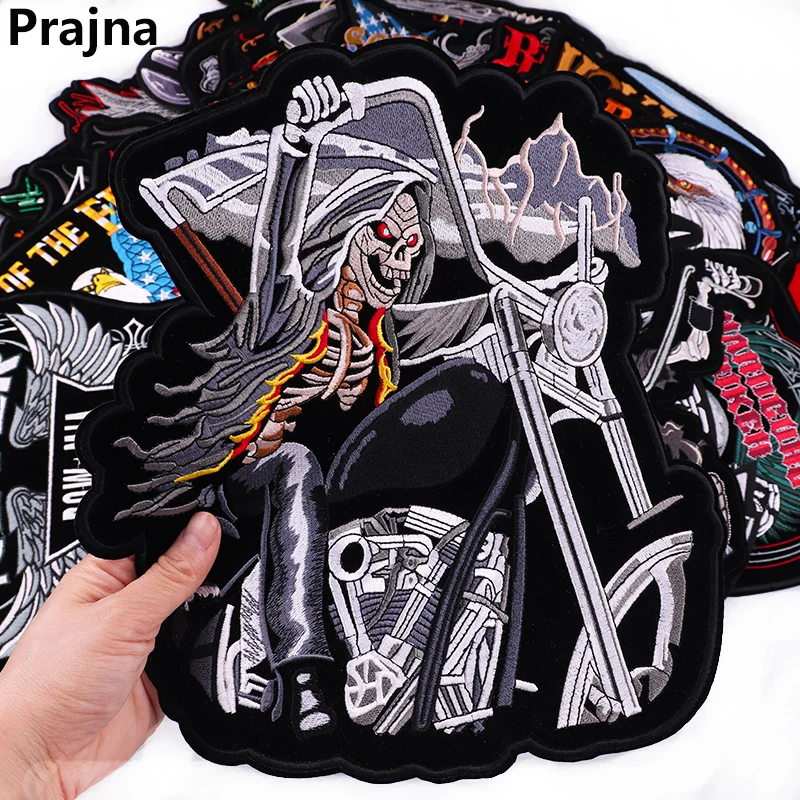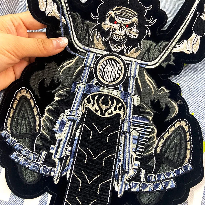 Parche de cola libre de LANd, parches bordados con espalda grande, parche de costura para motociclista, parches de hierro para ropa, chaqueta, pantalones vaqueros DIY