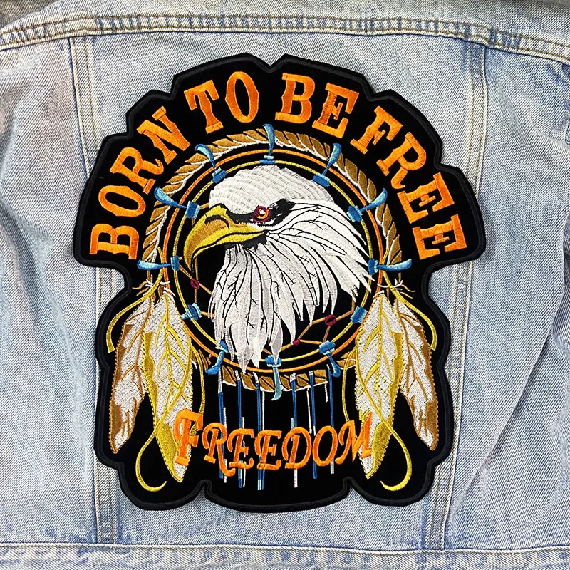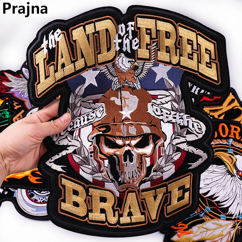 Parche LAND FREE BRAVE, parches bordados con espalda grande, parche de costura para motociclista, parches para planchar para ropa, chaqueta, pantalones vaqueros DIY