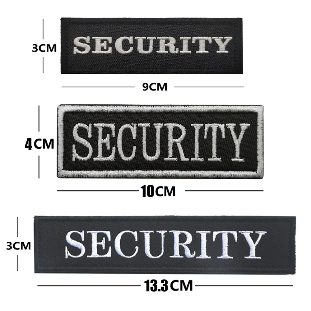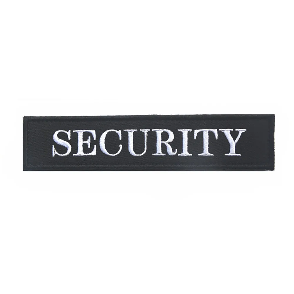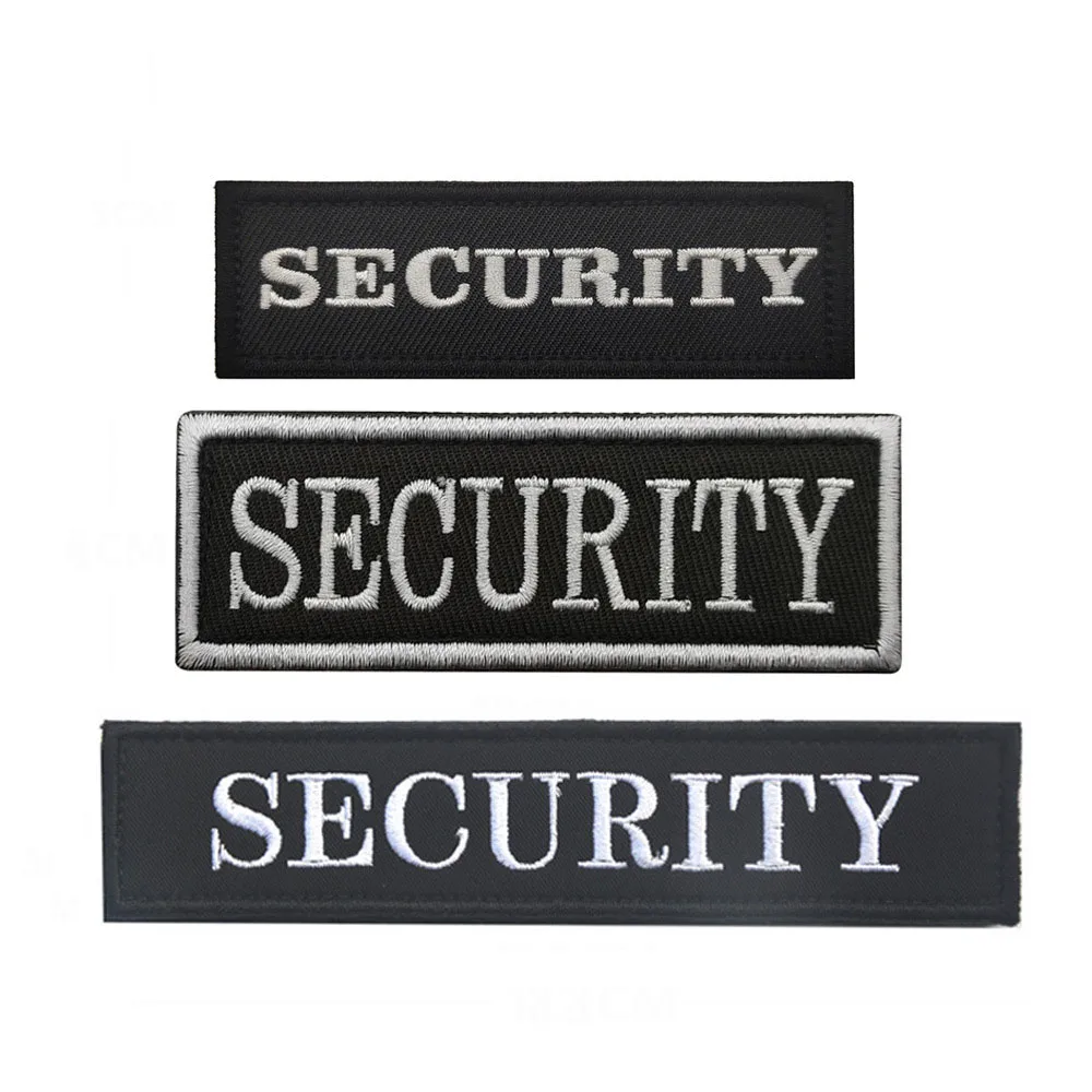 Parche con letras bordadas de seguridad, parche táctico militar con gancho, banda para el pecho, apliques para brazalete