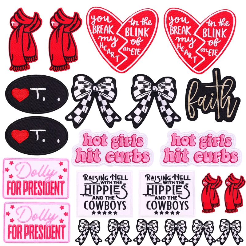 Parche con letras de corazón de dibujos animados de amor, parches bordados con lazo a cuadros para ropa, DIY eslogan de parche con letras, parches para coser DIY