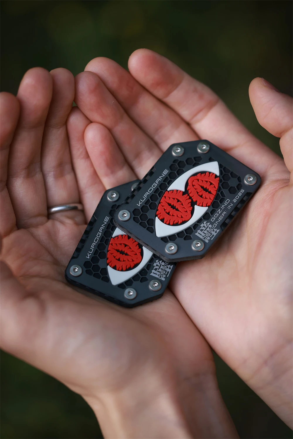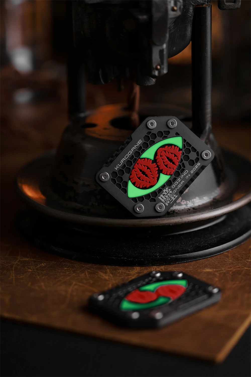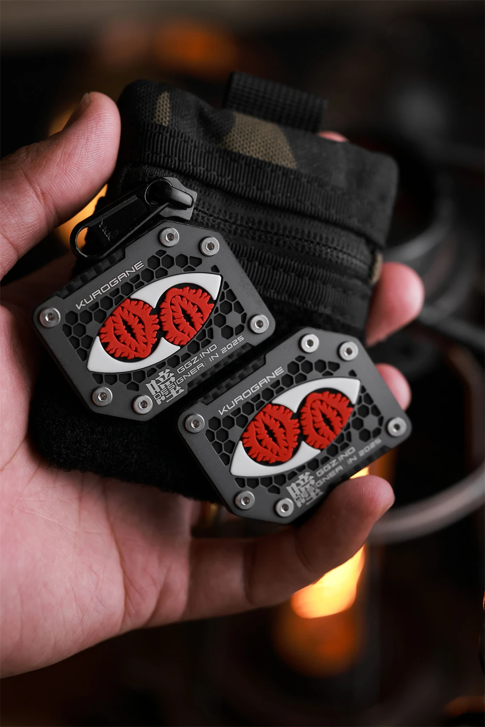 Material: fibra de carbono T300/placa inferior de PET, panel hueco de aleación de titanio TC4, material de PVC luminoso de aluminato de estronto de tierras raras (luminoso rojo raro), chip NFC, parte posterior con gancho Tamaño: 38*50*3mm Nota: Edición limitada