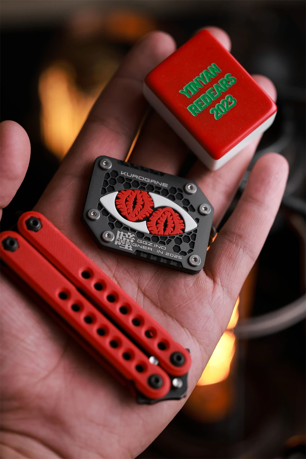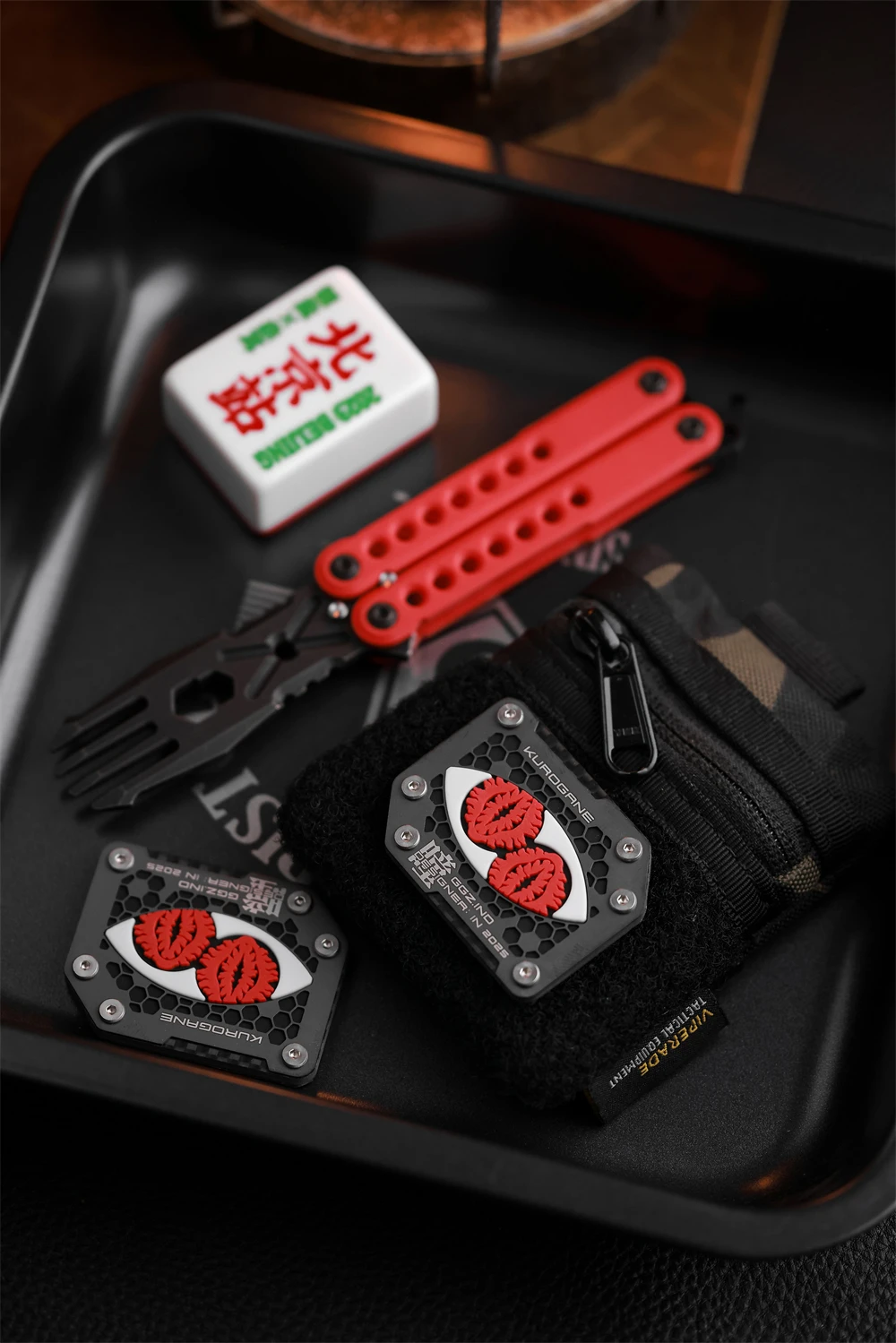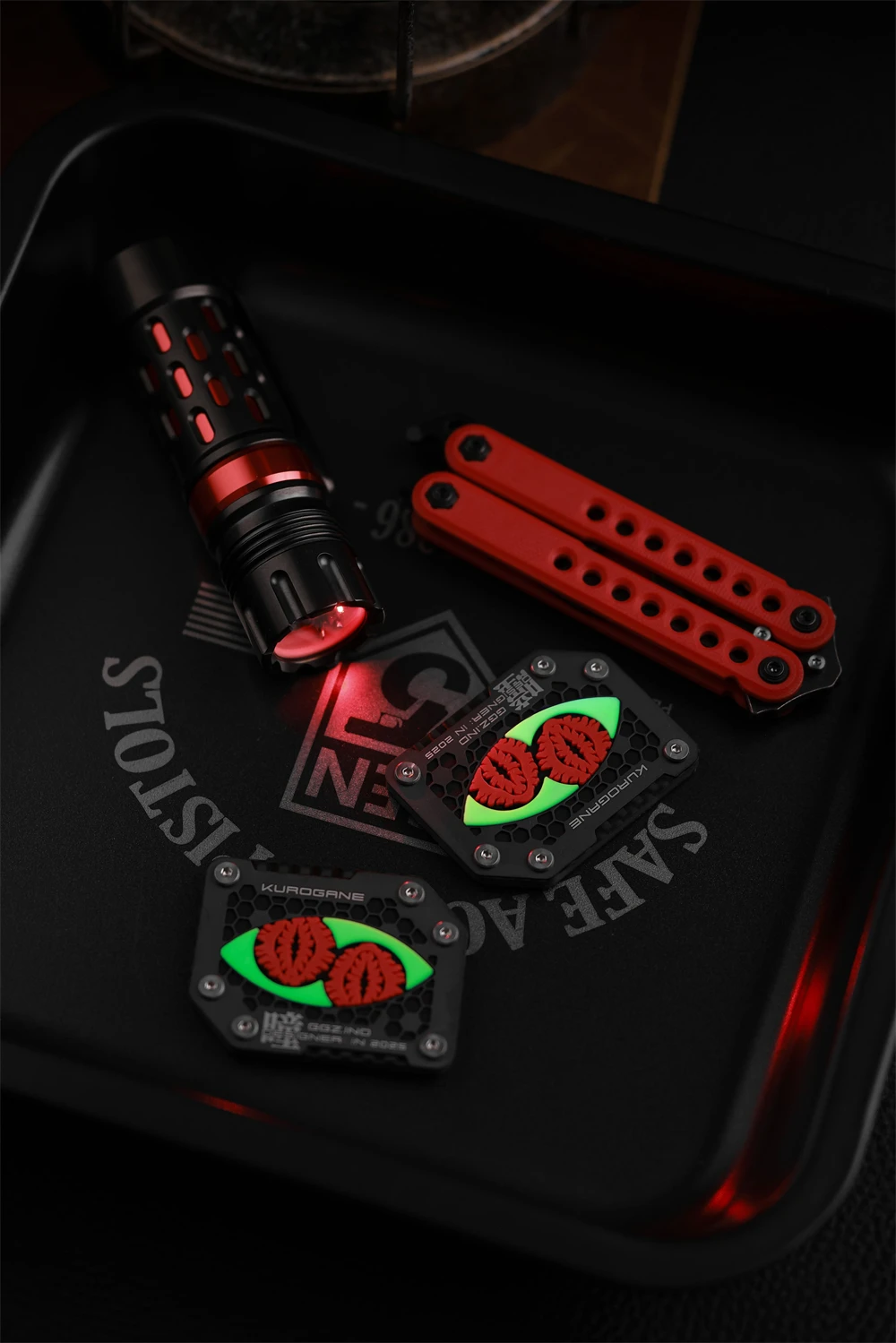 Material: fibra de carbono T300/placa inferior de PET, panel hueco de aleación de titanio TC4, material de PVC luminoso de aluminato de estronto de tierras raras (luminoso rojo raro), chip NFC, parte posterior con gancho Tamaño: 38*50*3mm Nota: Edición limitada