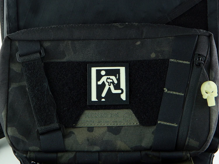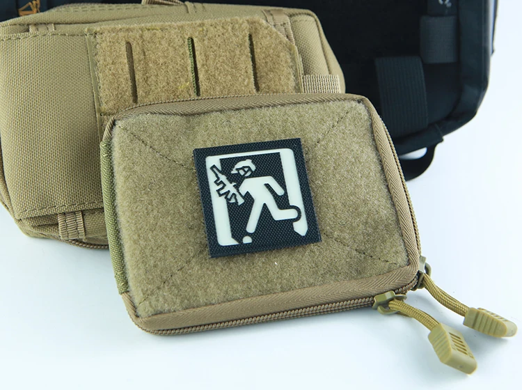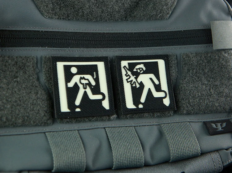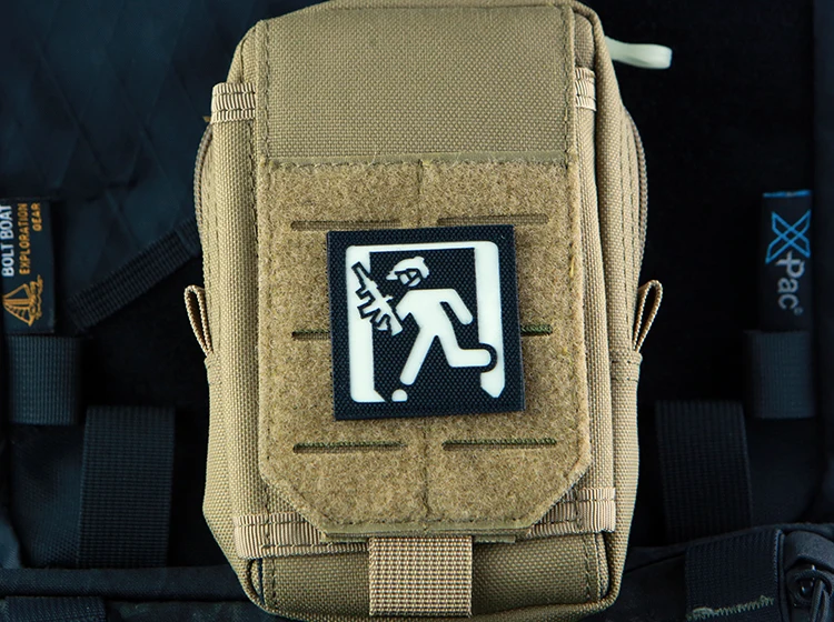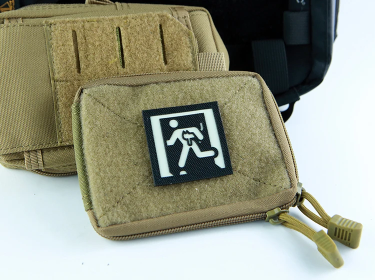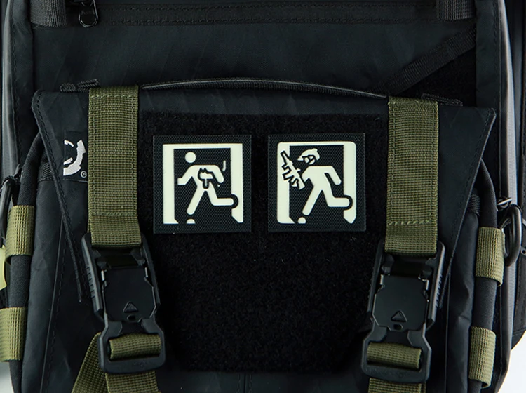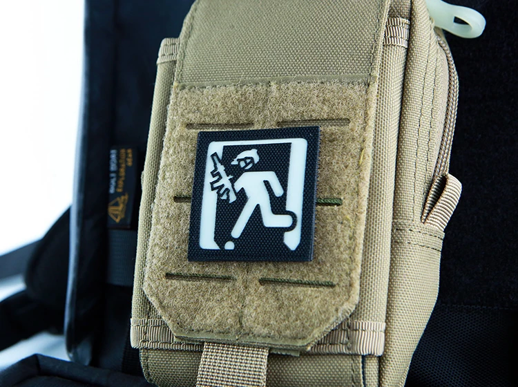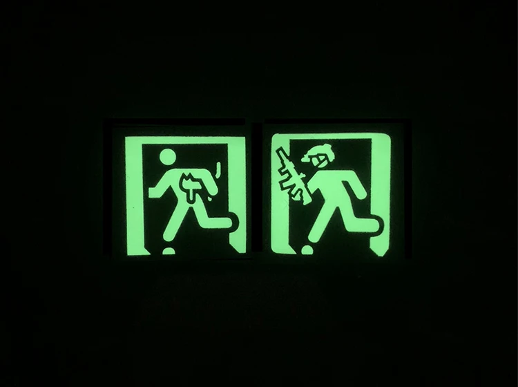 Parche luminoso de Escape con Gato, señal de paso de seguridad de salida de emergencia, insignias tácticas, brazalete DIY para ropa y mochila