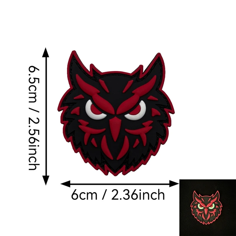 Parche luminoso de PVC de búho con gancho y bucle, parches de accesorios de ropa, insignia moral al aire libre, insignias tácticas para mochila