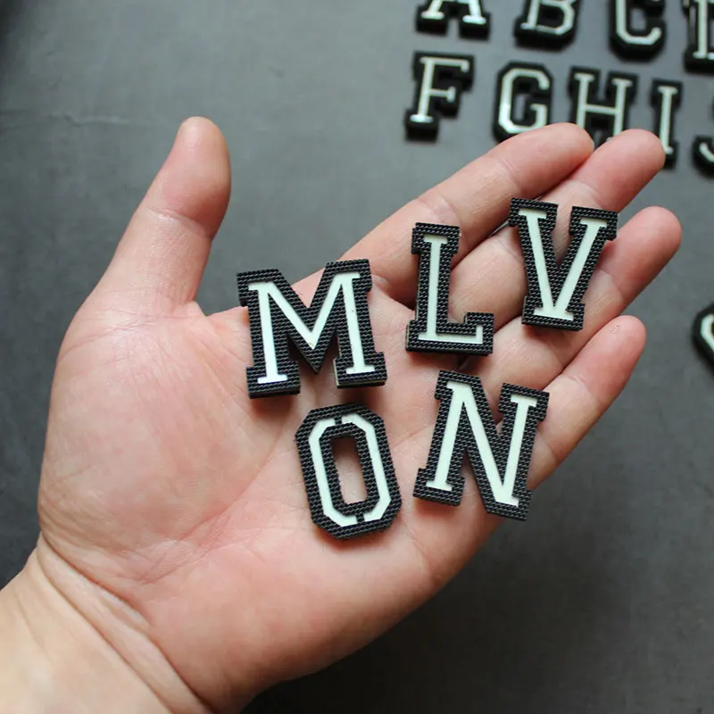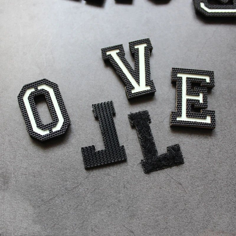 Parche luminoso con nombre personalizado, letras en inglés A-Z, insignia táctica negra de nailon, ropa DIY, sombrero, mochila, decoración que brilla en la oscuridad