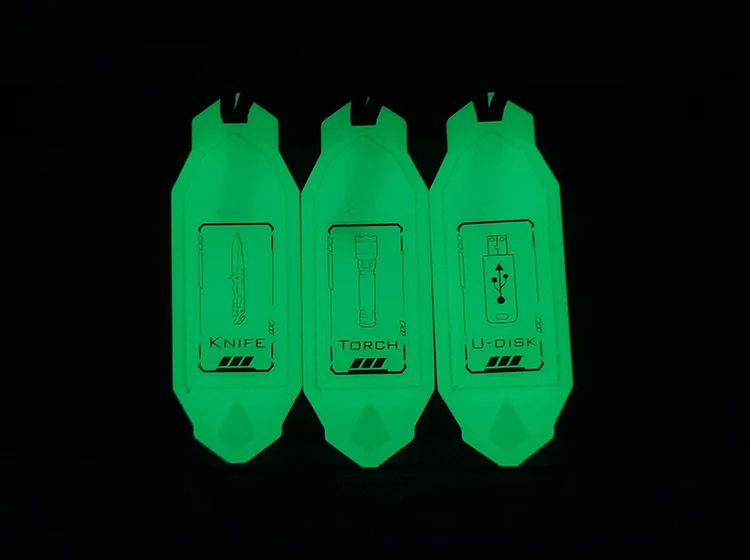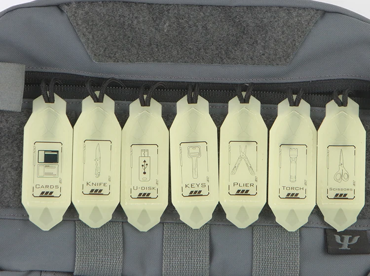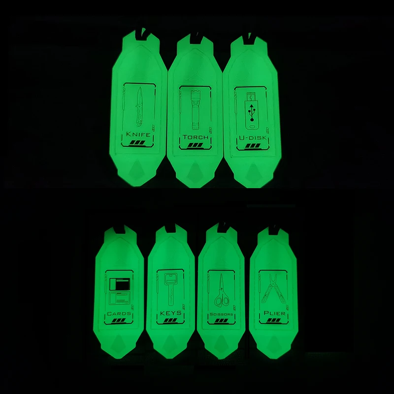 Parche luminoso de TPU con mango de tracción, 7 estilos, mochila táctica, cola funcional EDC, cuchillo de disco en U, tijeras, tarjetas, alicates de antorcha para bolsa