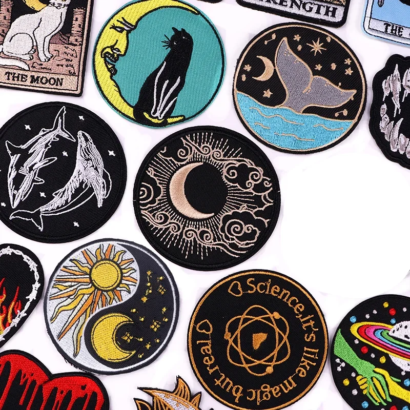 Parche de Luna ondulada para ropa, parches bordados Punk/Animal para chaquetas, coser apliques de letras, parches para planchar para ropa DIY