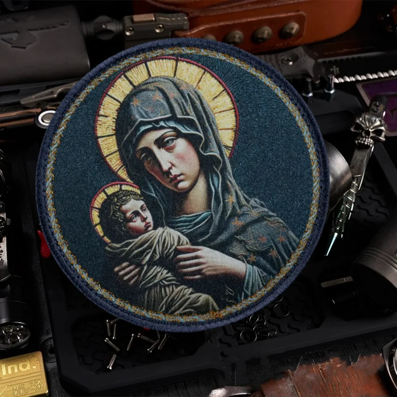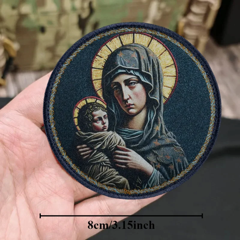 Parche de madre de Dios, parches impresos con gancho y bucle para ropa, insignia de moral del ejército militar, brazalete, pegatinas tácticas para mochila