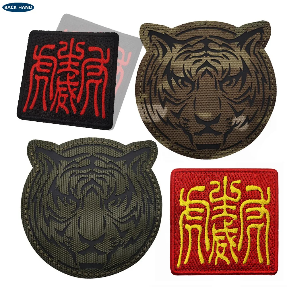 Parche mágico reflectante del rey del bosque, paquete de bordado de Tigre, insignia de brazo, parches militares para ropa