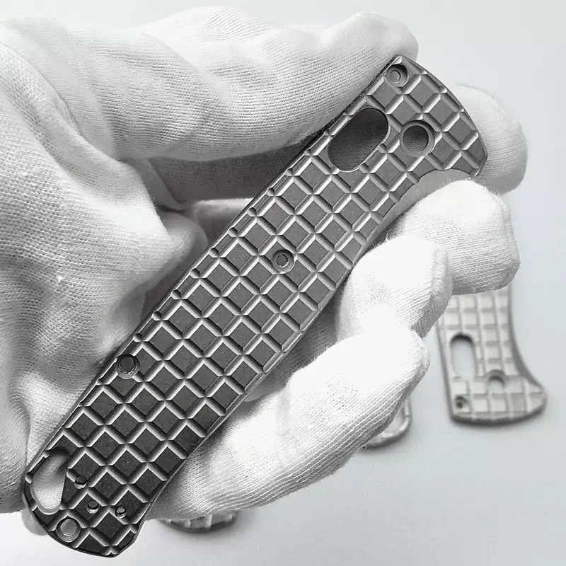 Parche con mango de aleación de titanio para BM 535, textura de celosía de cuchillo, accesorios de modificación de parche Bugout 535 de aleación de titanio, 1 par