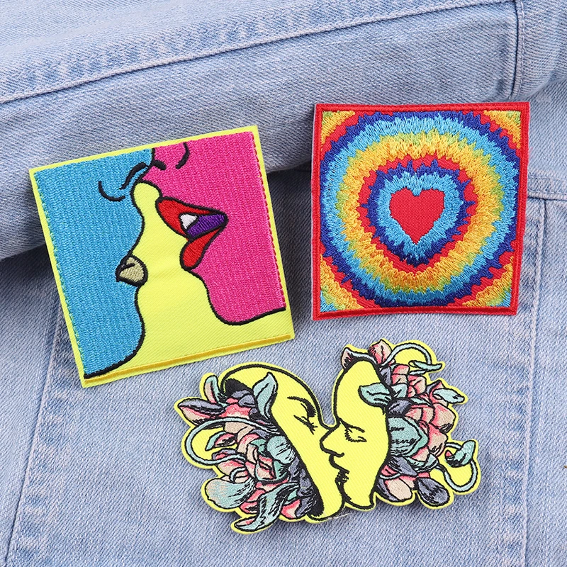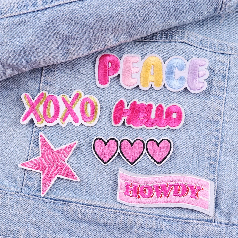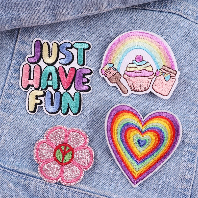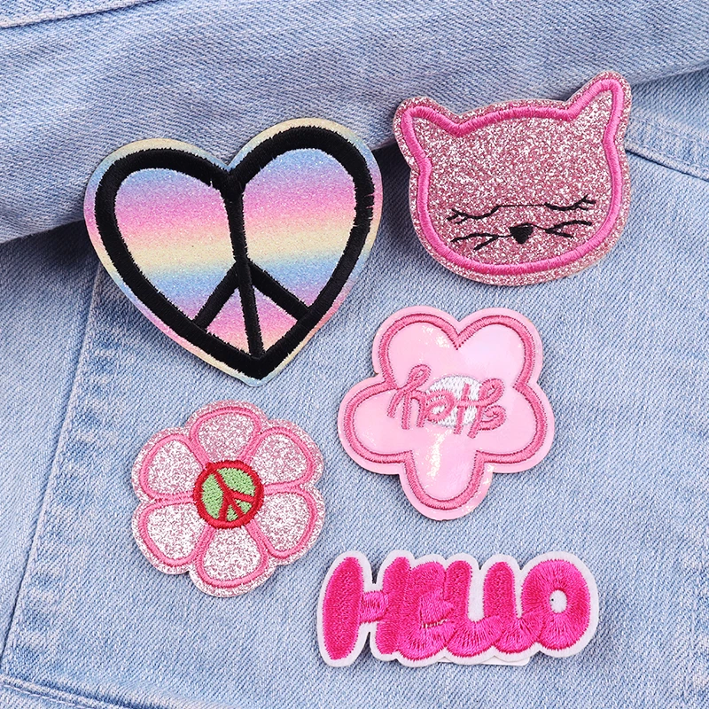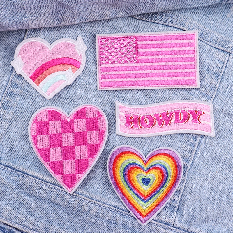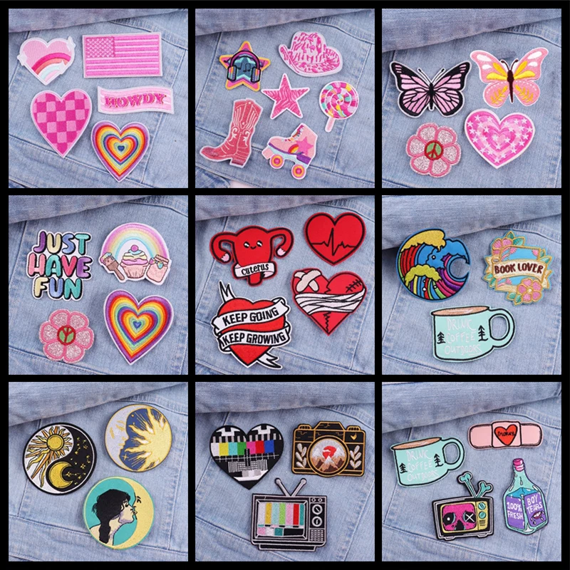 Parche de mariposa de colores para coser dibujos animados, parches para planchar en la ropa, rayas de corazón, parches bordados en la ropa
