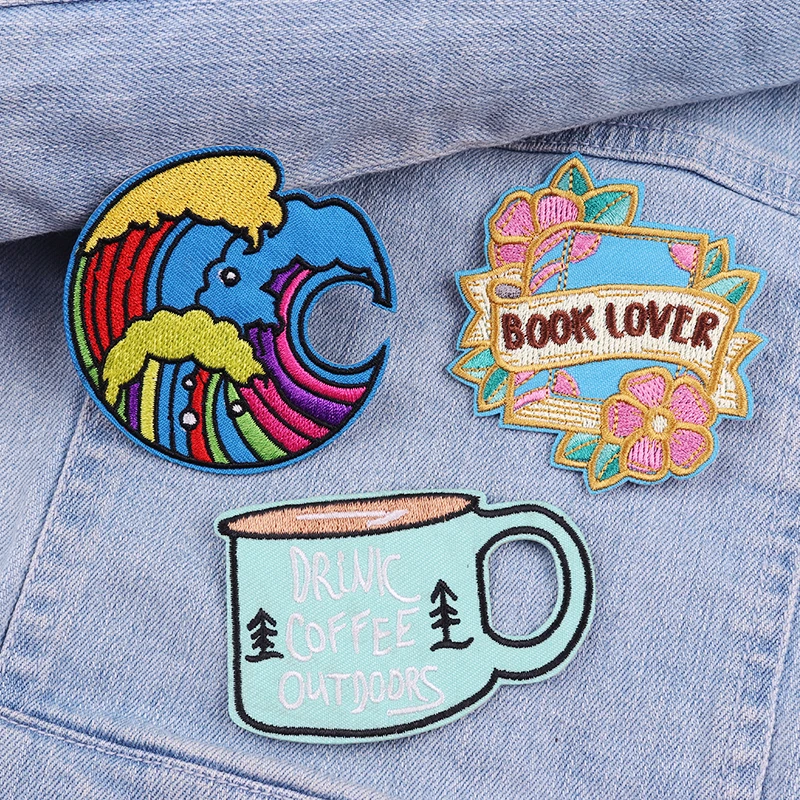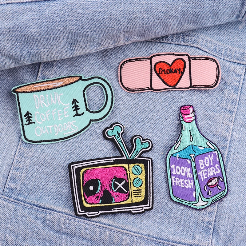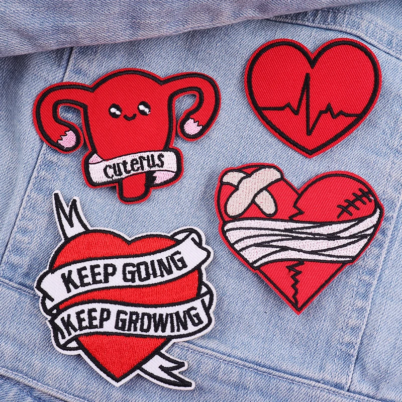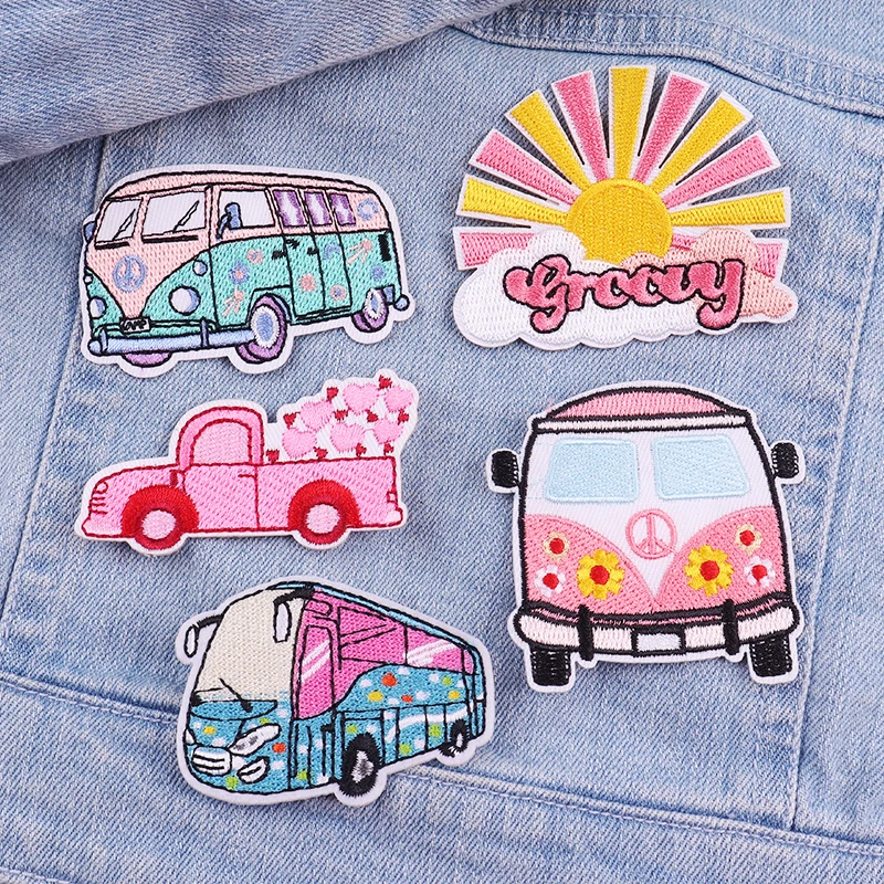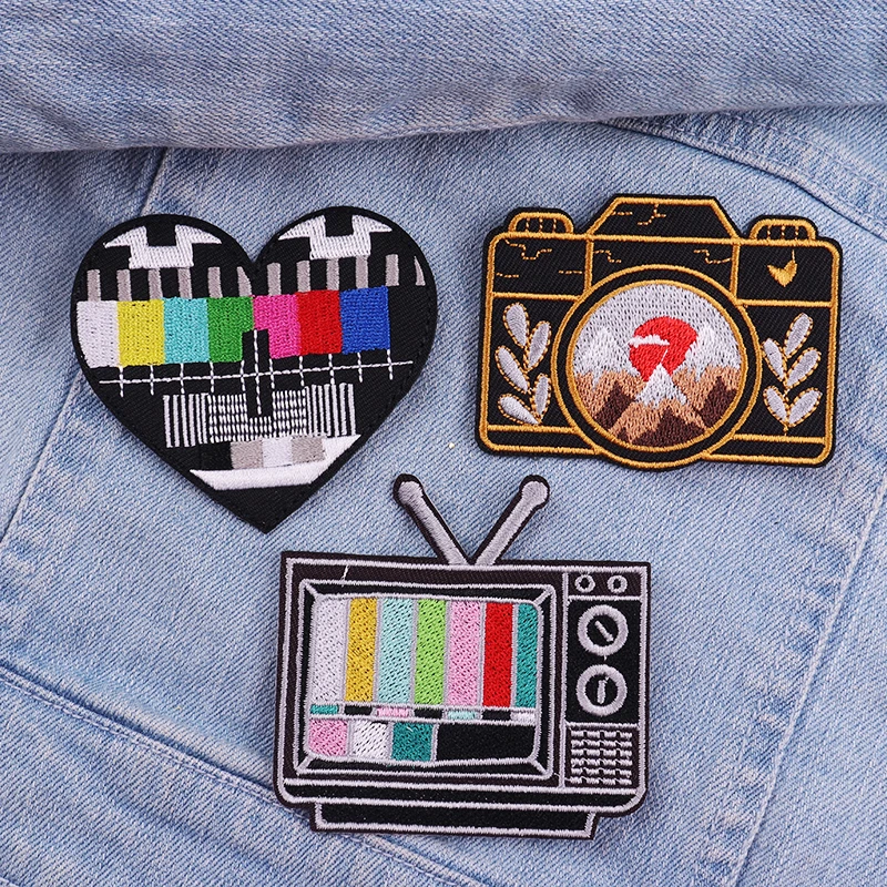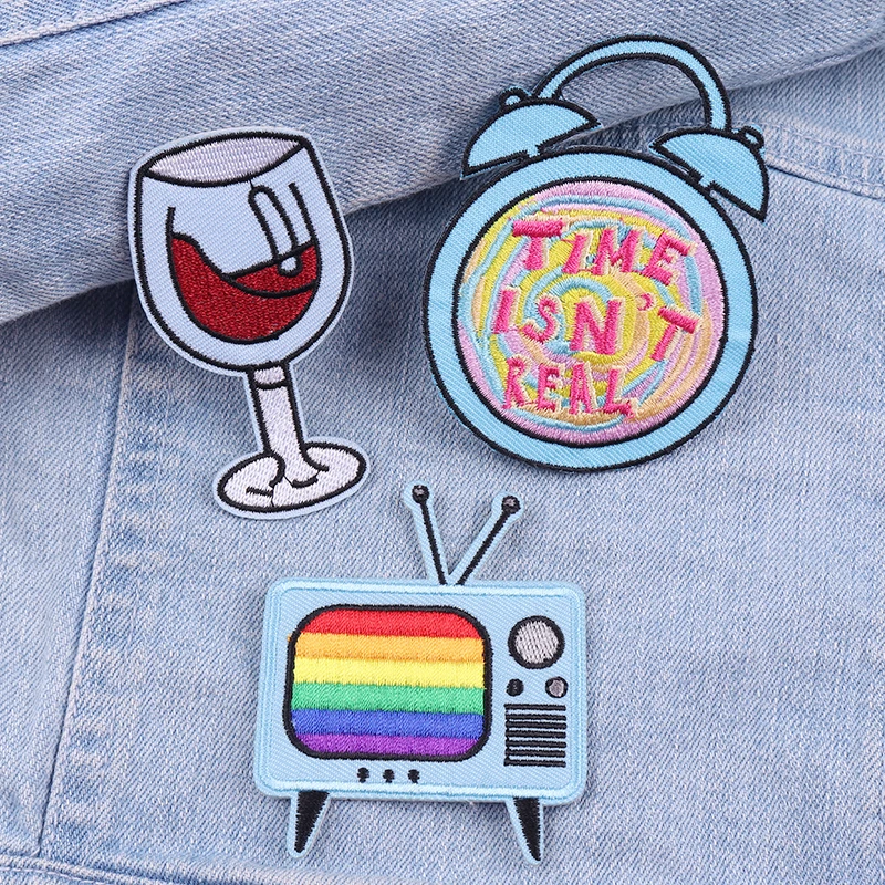 Parche de mariposa de colores para coser dibujos animados, parches para planchar en la ropa, rayas de corazón, parches bordados en la ropa