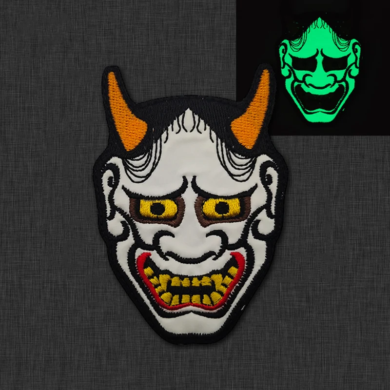 Parche de máscara Prajna japonés Wraith, insignias tácticas bordadas luminosas Noh, accesorio de emblema de rendimiento para mochila de ropa