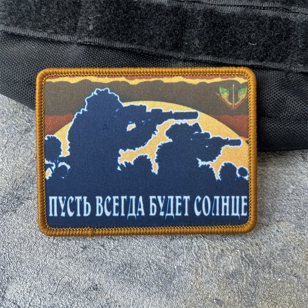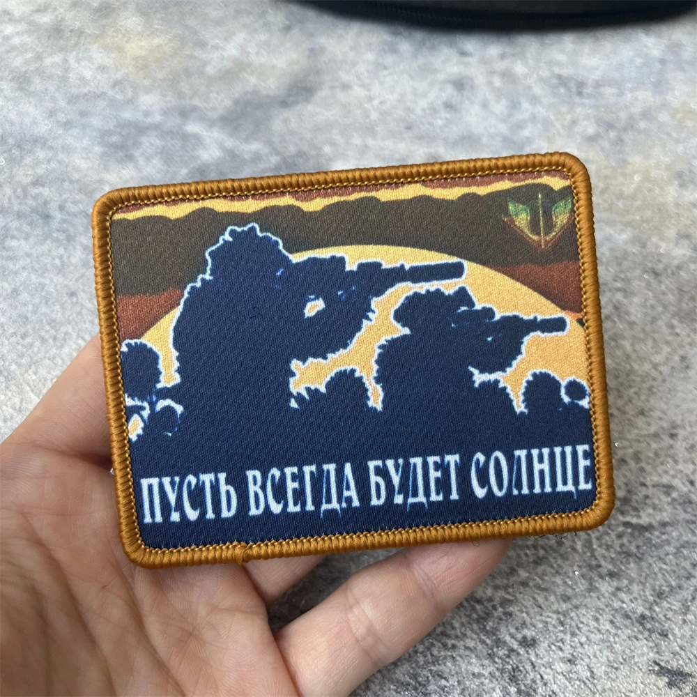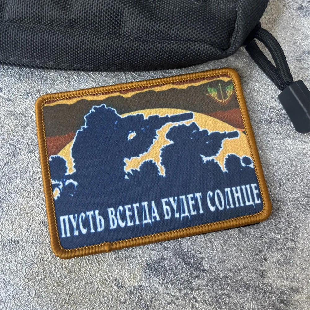 Parche May The Sun Shine Forever, insignia de moral táctica de Chevron, parches de bucle de gancho impresos, brazalete del ejército militar, pegatina para mochila