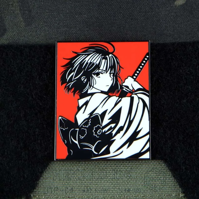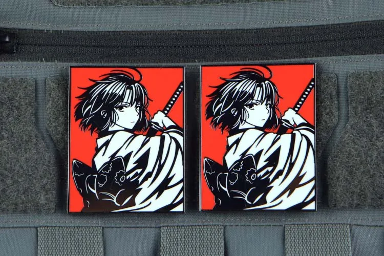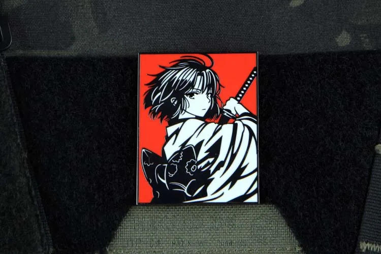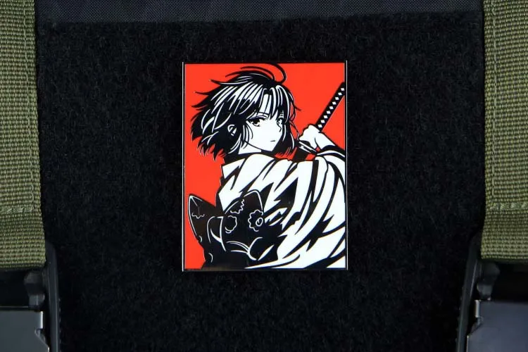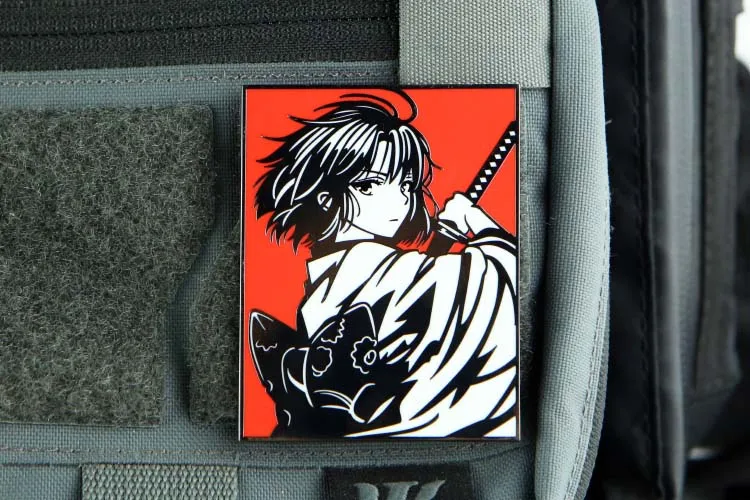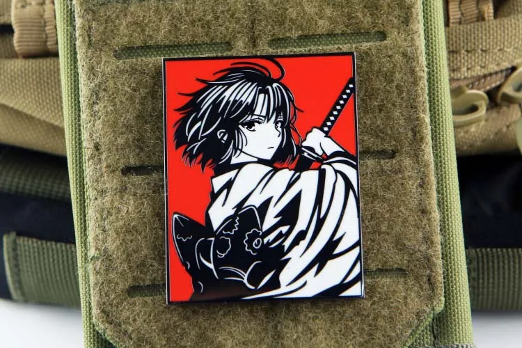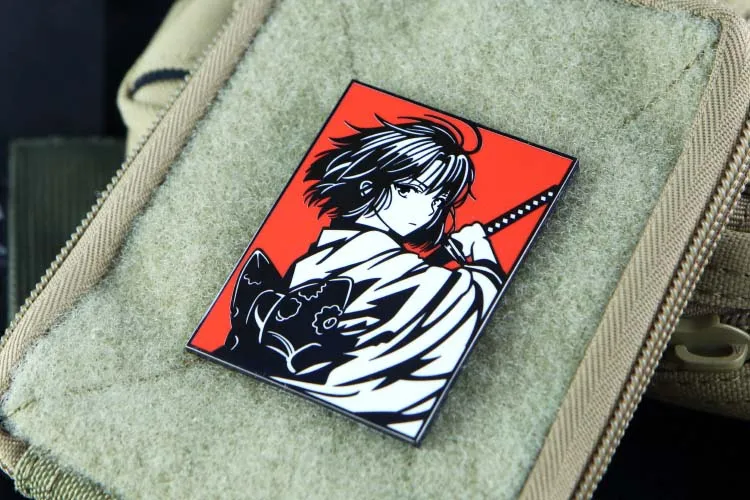 Parche de Metal Ryougi Shiki de Garden of Sinners, insignia táctica decorativa para mochila de chica de Anime japonés con gancho para fanáticos
