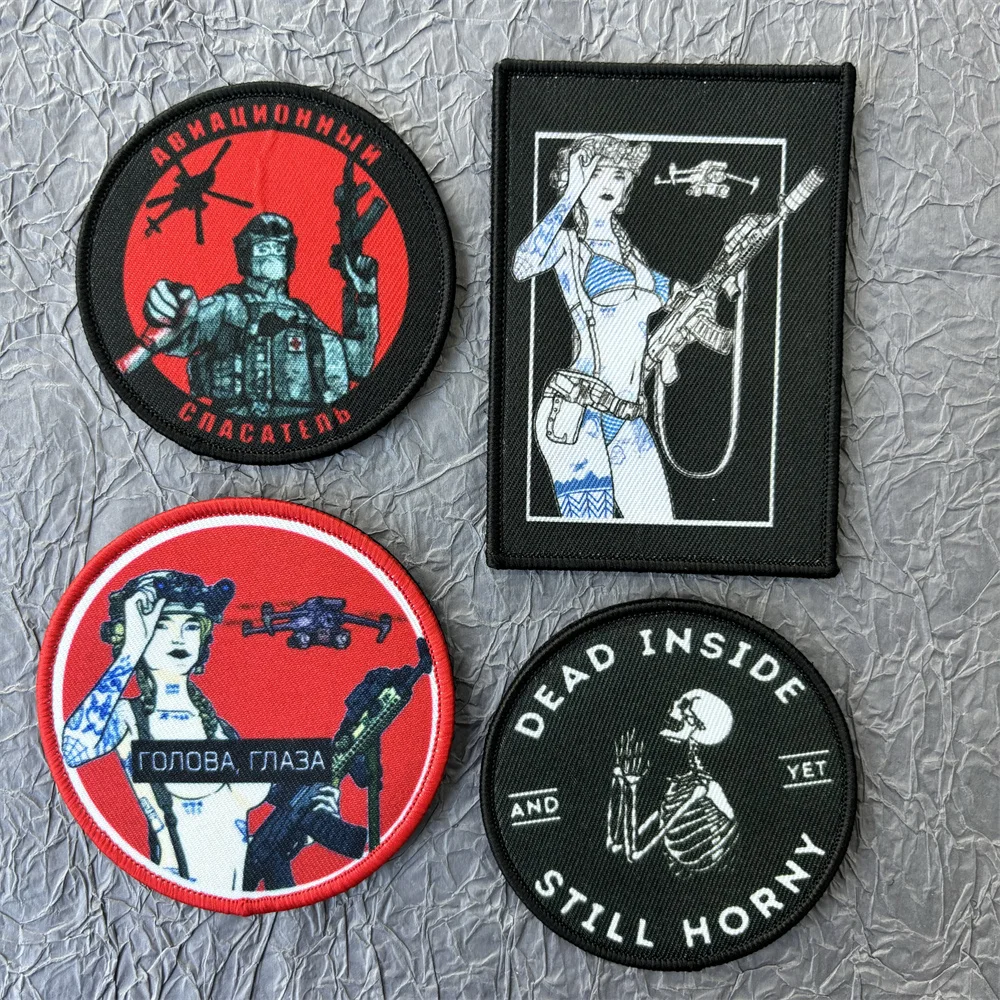 Parche militar "Air rescuser" en la ropa, insignia de moral, "cabeza y ojos", equipo táctico de Dron ruso, parches de gancho y bucle, mochila