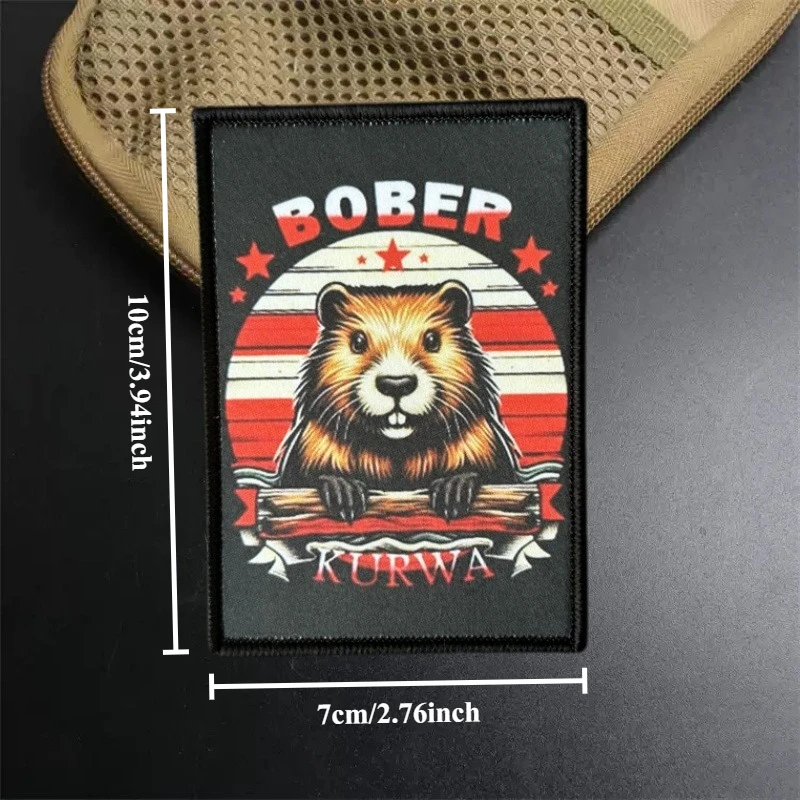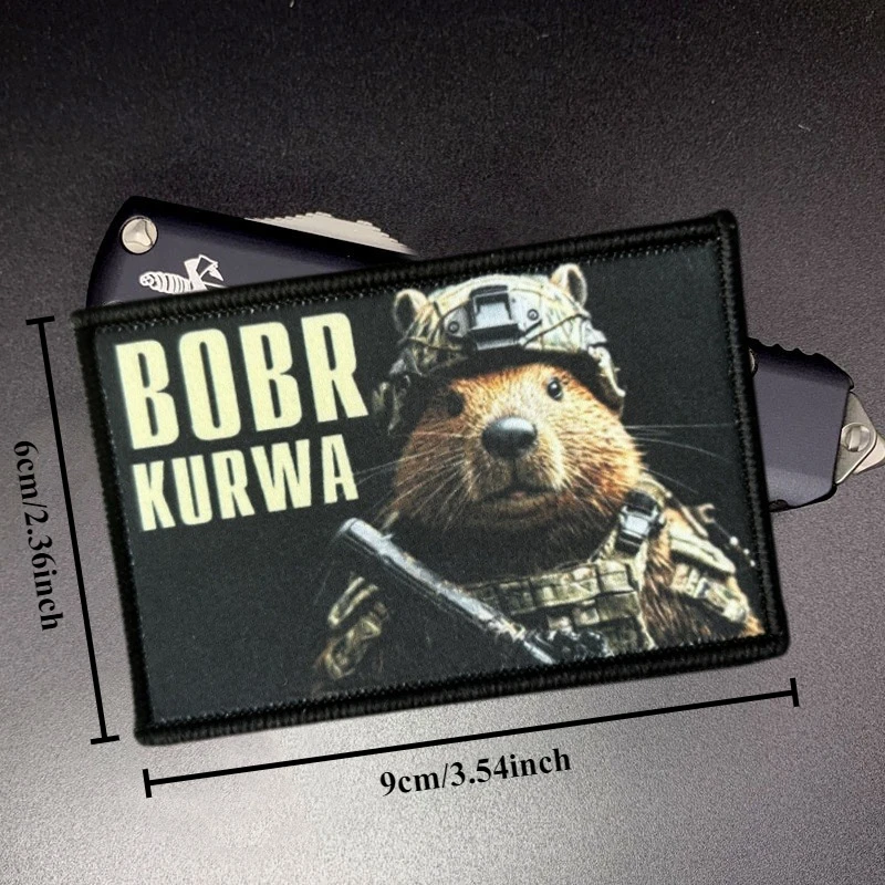 Parche militar bordado con estampado táctico "BOBR KURWA", insignia de moral, parches de gancho, ropa, mochila, brazalete, pegatina