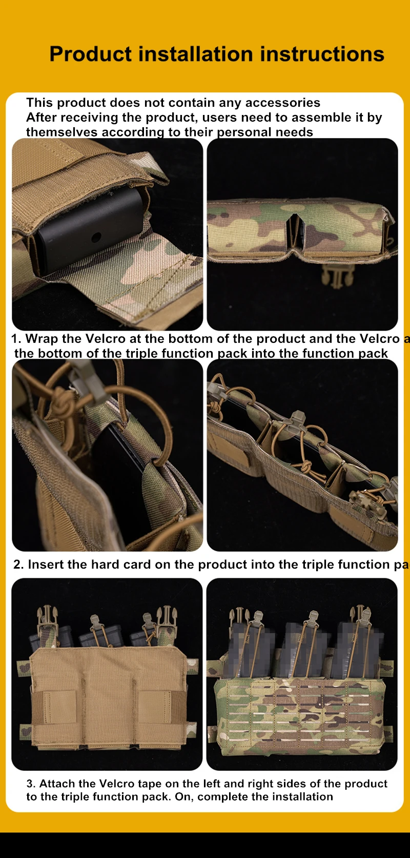 Instale el equipo Molle: se adapta al equipo Molle y puede equiparse con varios equipos como panel de navegación, modelo de bomba de humo, etc.