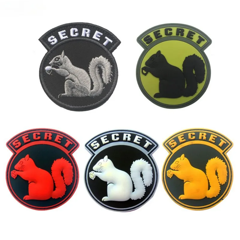 Parche de mono táctico bordado de ardilla secreta de PVC 3D para ropa, insignias de fanáticos militares en mochila, pegatinas de sombrero