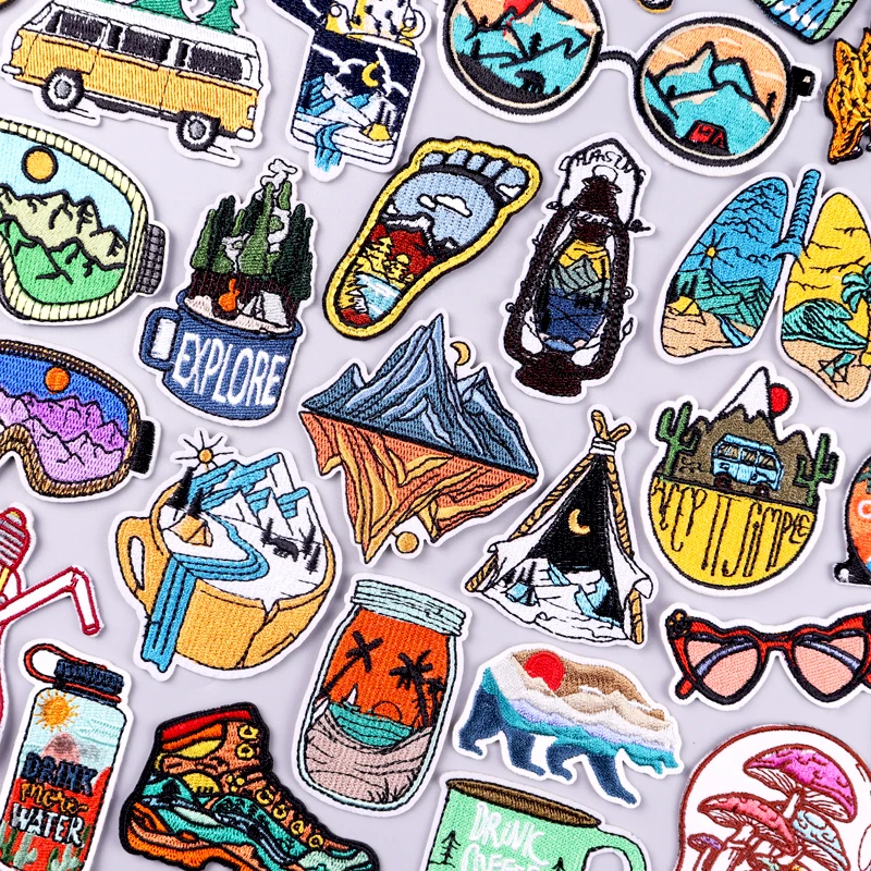 Mountain Patch Iron On Patches For Clothing Thermoadhesive Patches On Clothes Wilderness Camping Embroidery Patch Diy Hook Loop