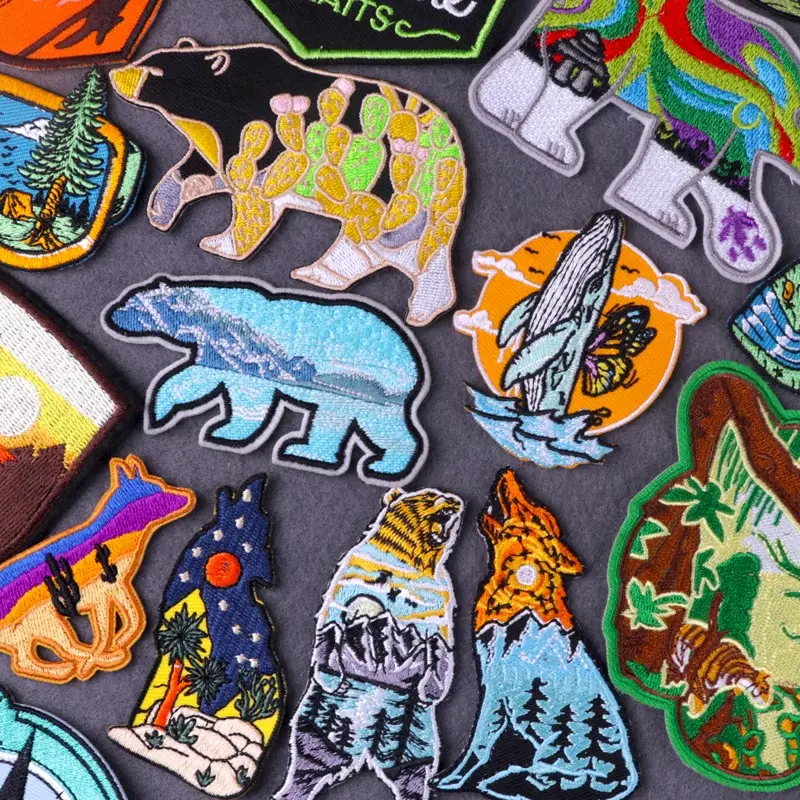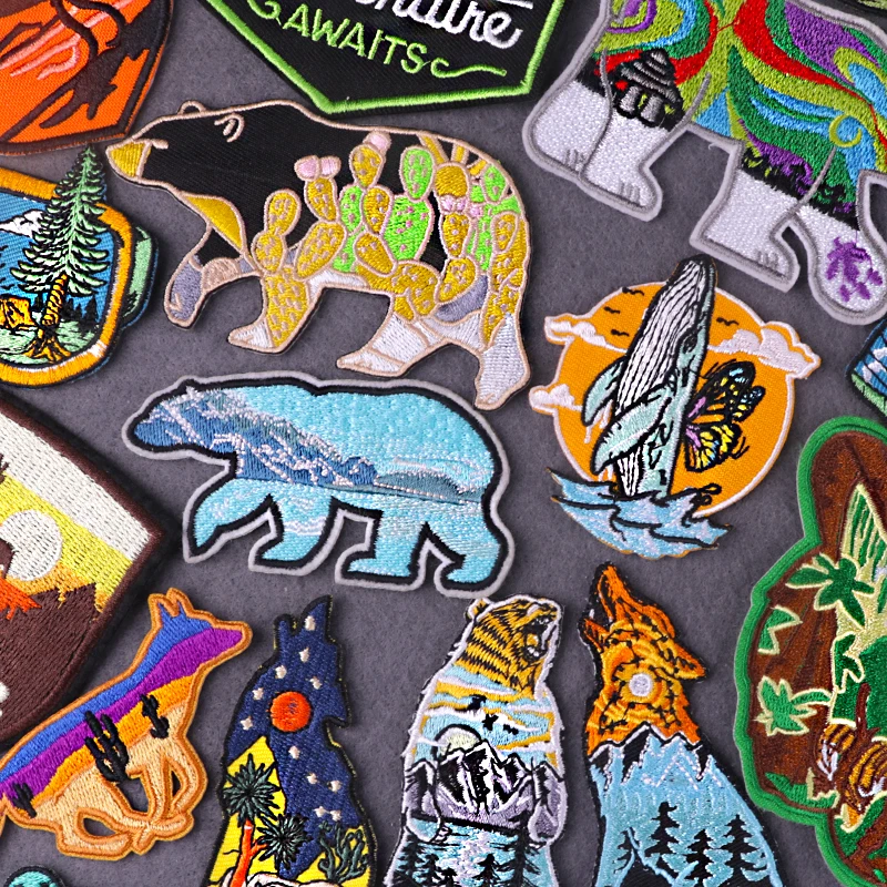 Parche de montaña para ropa parches termoadhesivos Diy oso bordado parche aventura viaje hierro en parches en ropa rayas