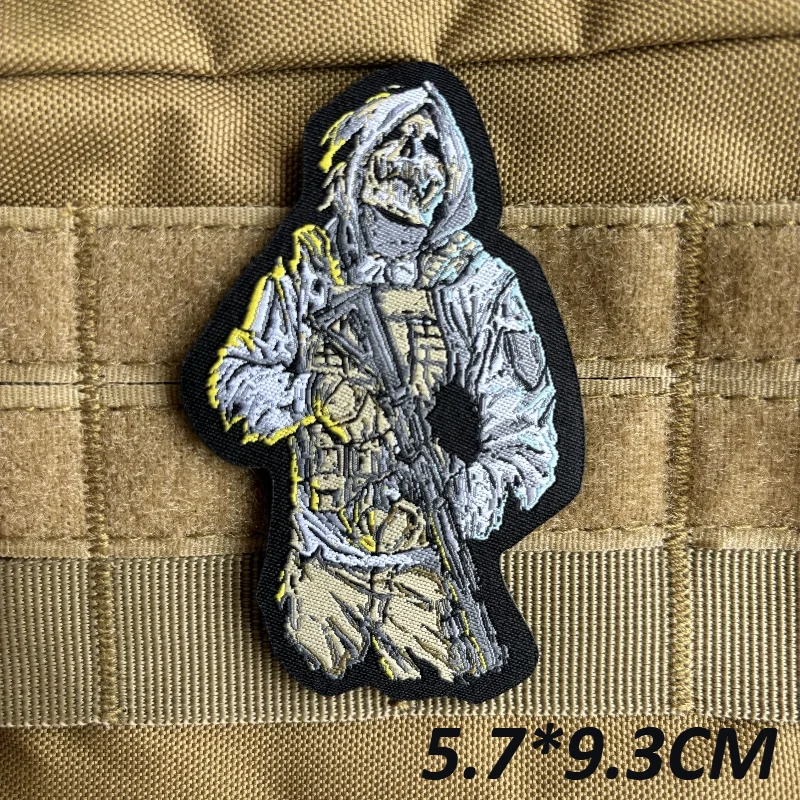 Parche de moral de la muerte, parches bordados de gancho y bucle del guerrero Reaper para ropa, insignia táctica, brazalete militar, pegatina para mochila