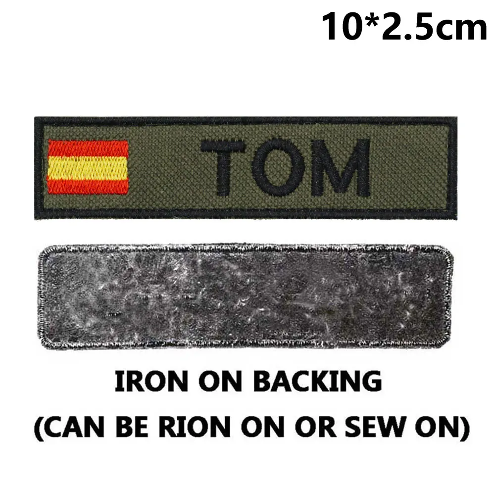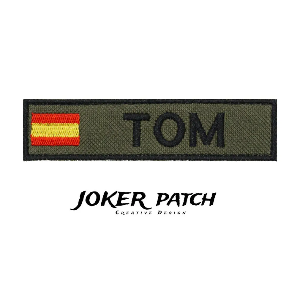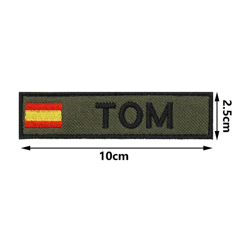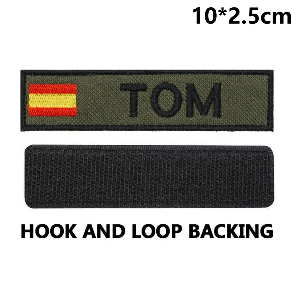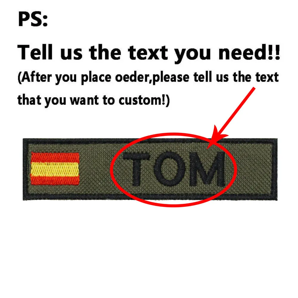 Parche con nombre de bandera de ES personalizado, bordado, texto personalizado, gancho de respaldo para ropa, sombrero y mochila