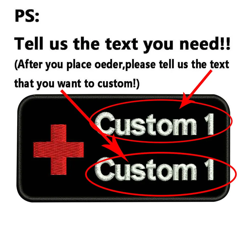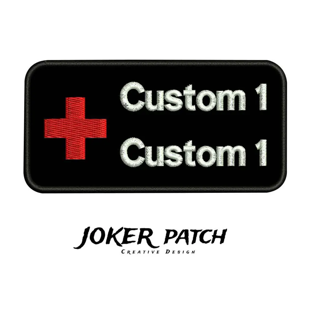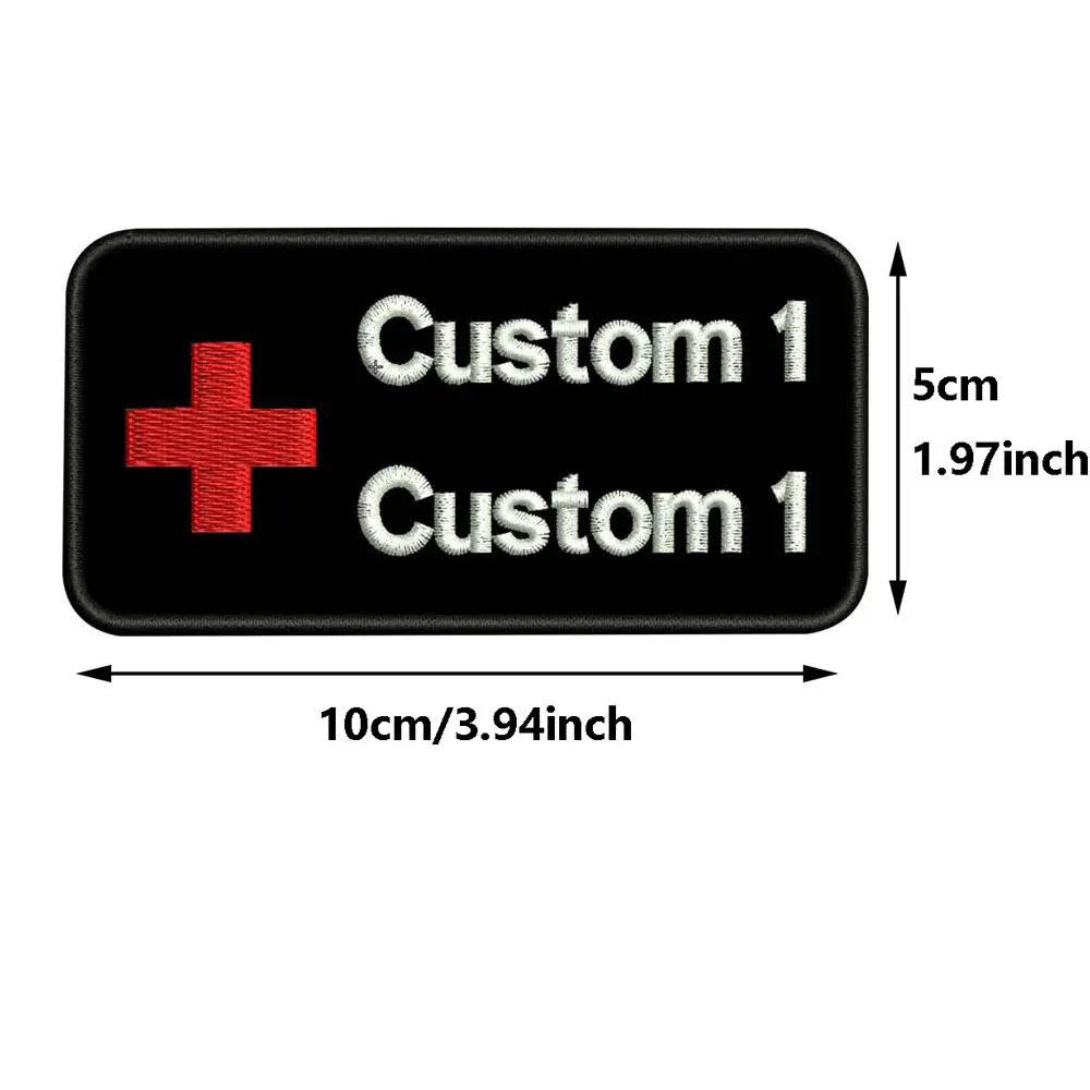 Parche de nombre bordado personalizado con logotipo de Cruz Roja, dos líneas de texto para accesorios militares personalizados