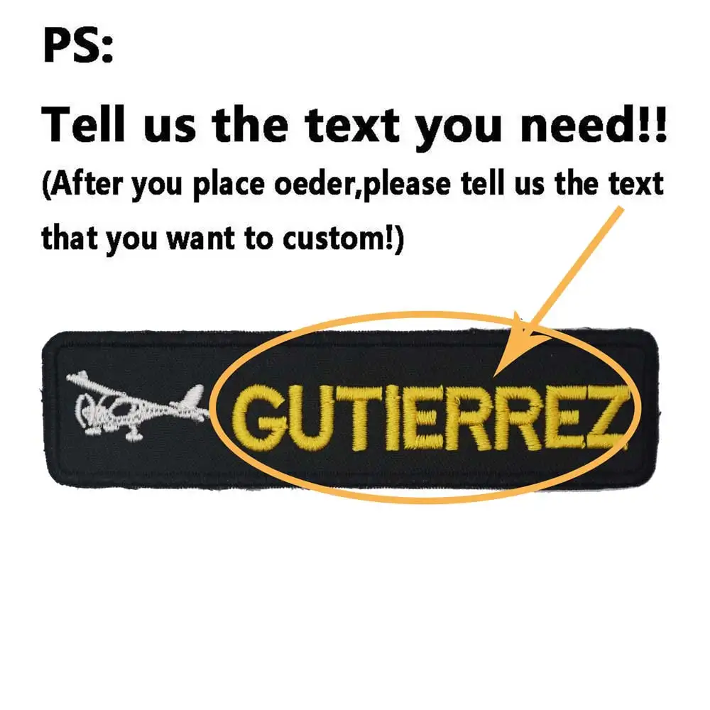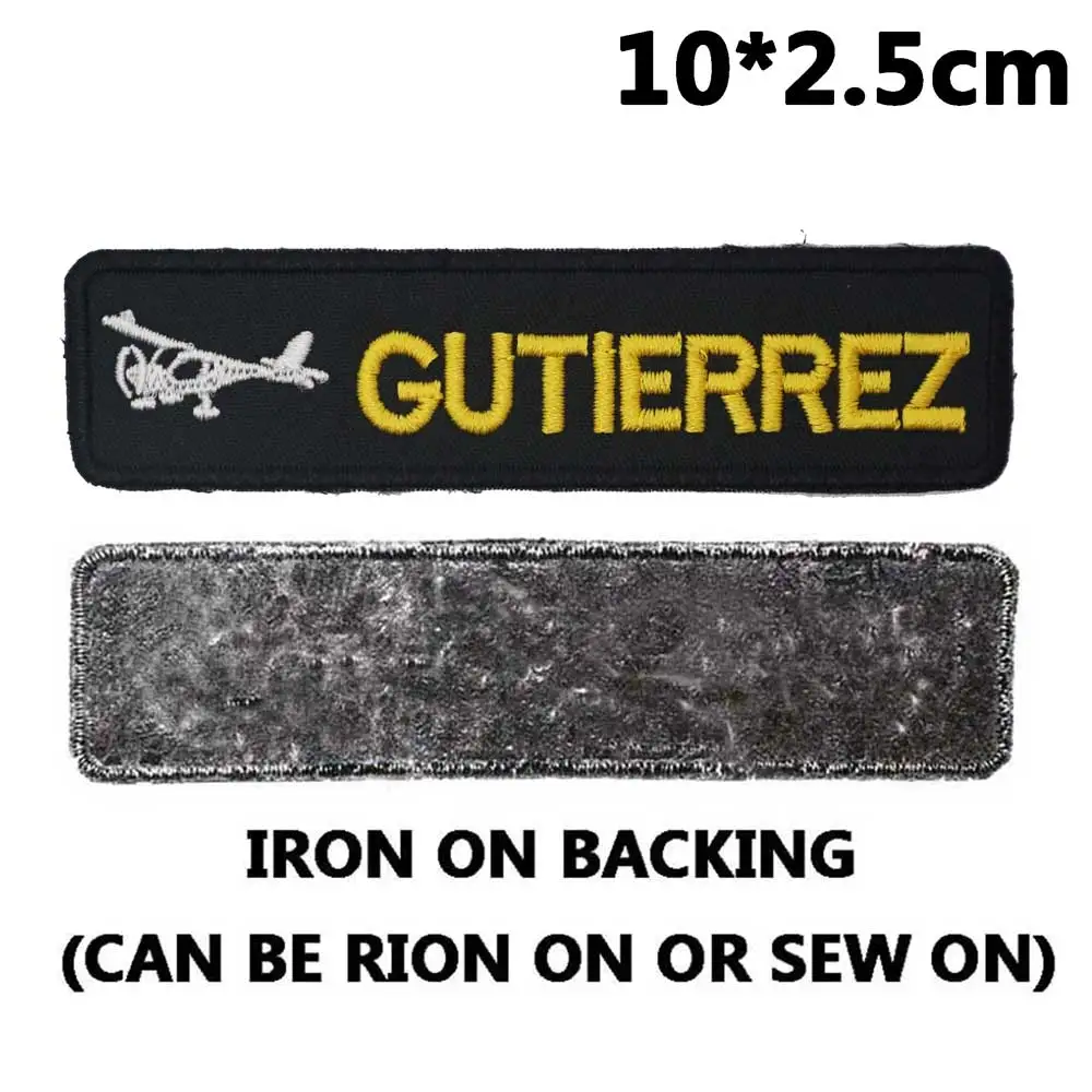 Parche de nombre bordado personalizado con marcas de aviones, Parche de texto personalizado con respaldo de gancho para ropa, sombrero y mochila