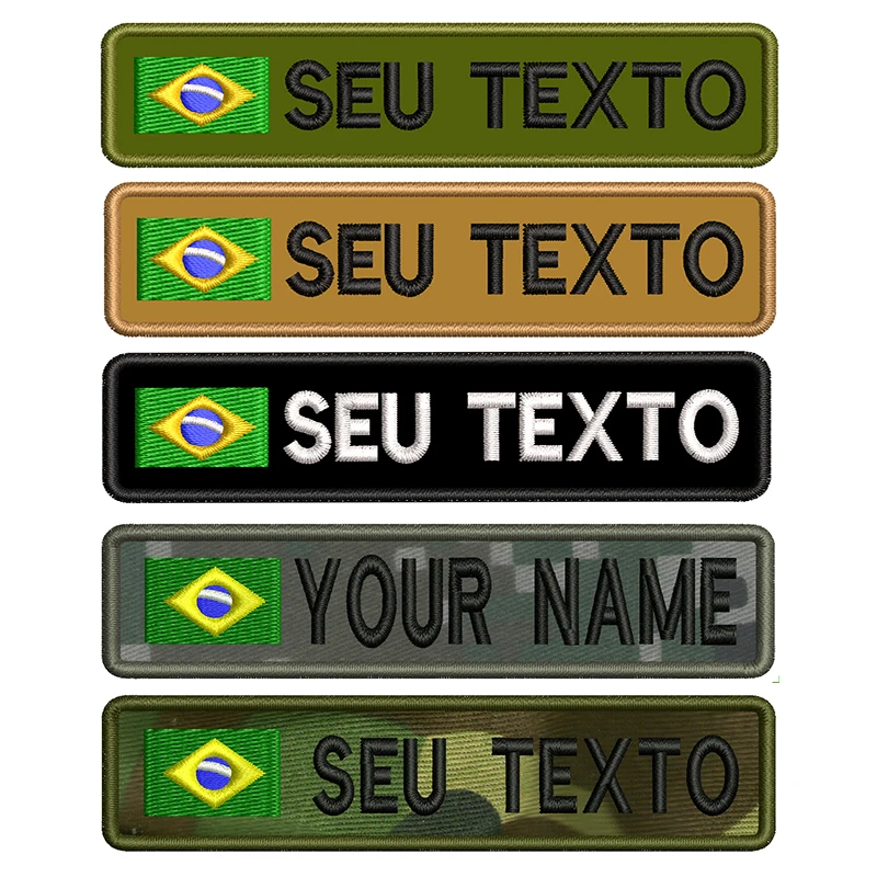 Brazil Flag Personalized Name Patch Embroidered Name Tag Text Sew or Hook Backing for Uniform Hat Morale Bag Pet Collar Harness