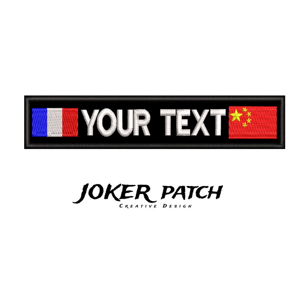 Parche con nombre personalizado con bandera francesa y bandera china, bordado, texto personalizado, gancho para ropa, sombrero, mochila