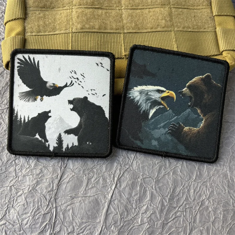 Parche de oso, insignia de moral táctica, parches de águila con gancho y bucle, mochila militar, pegatinas impresas, apliques para ropa