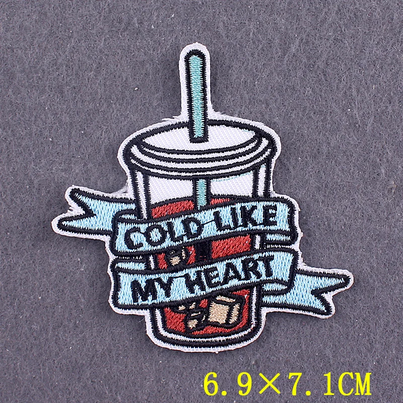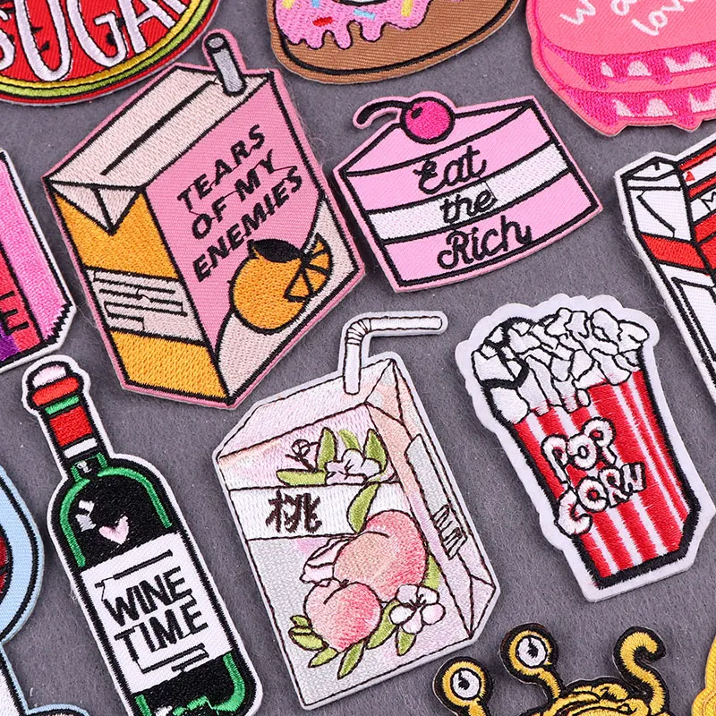 Parche para pastel de bebidas, parches termoadhesivos para ropa, pegatinas para ropa, parches bordados de comida de dibujos animados en ropa a rayas