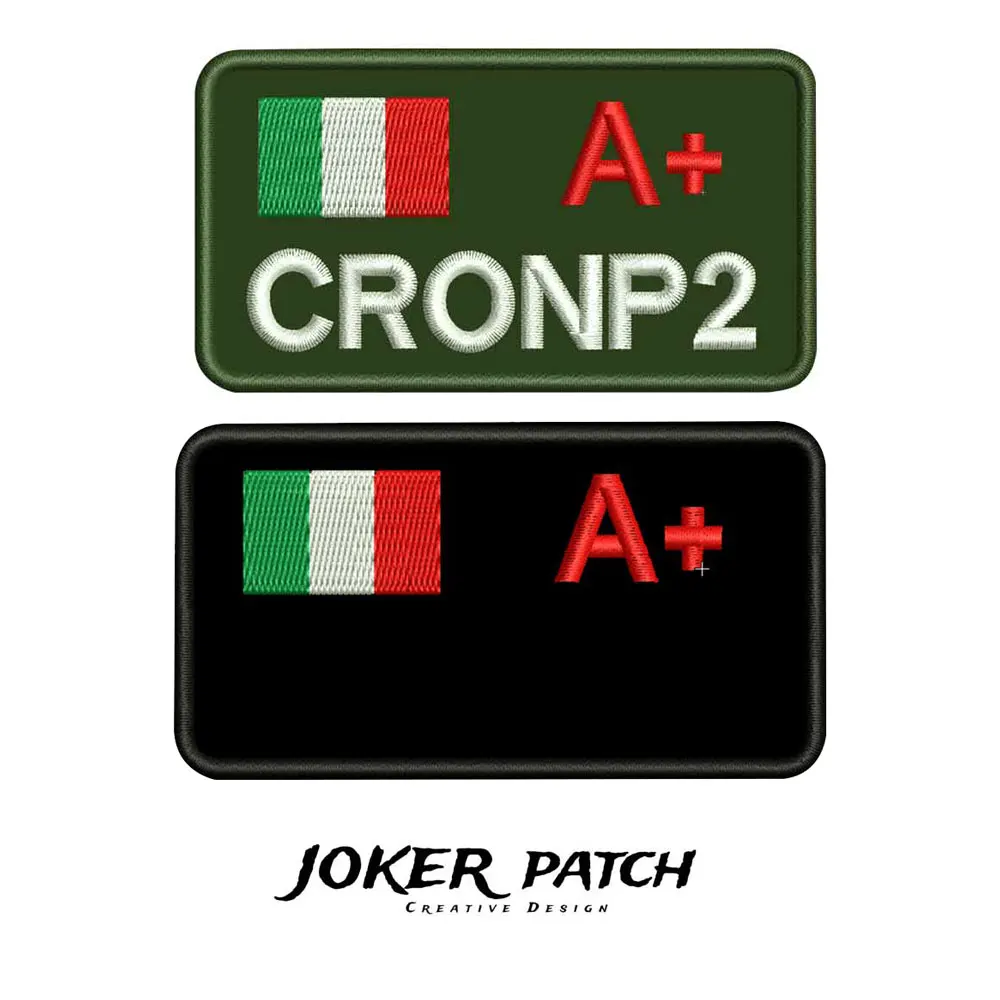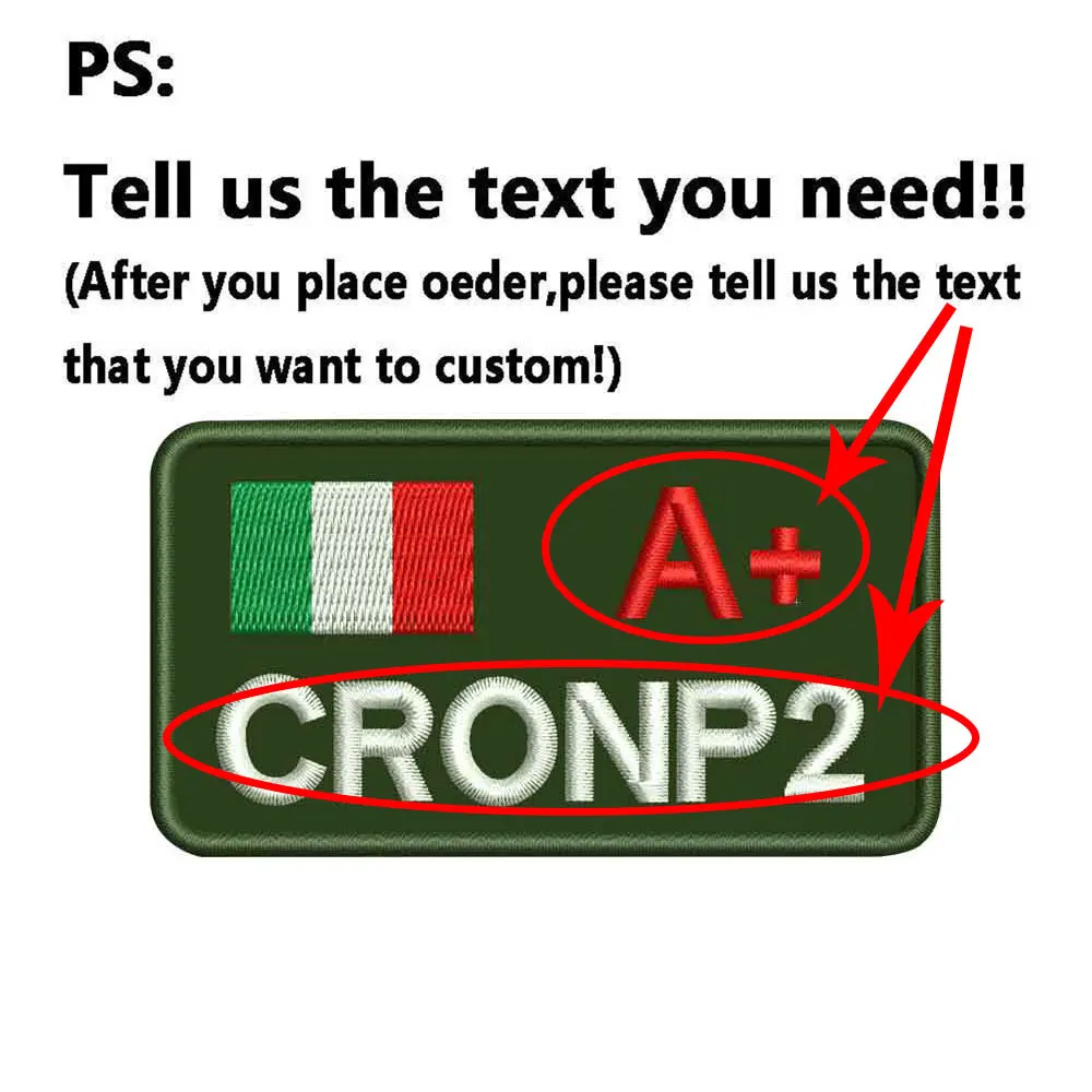 Parche personalizado con nombre de bandera italiana, bordado de dos líneas de texto, con respaldo de gancho para ropa, sombrero y mochila
