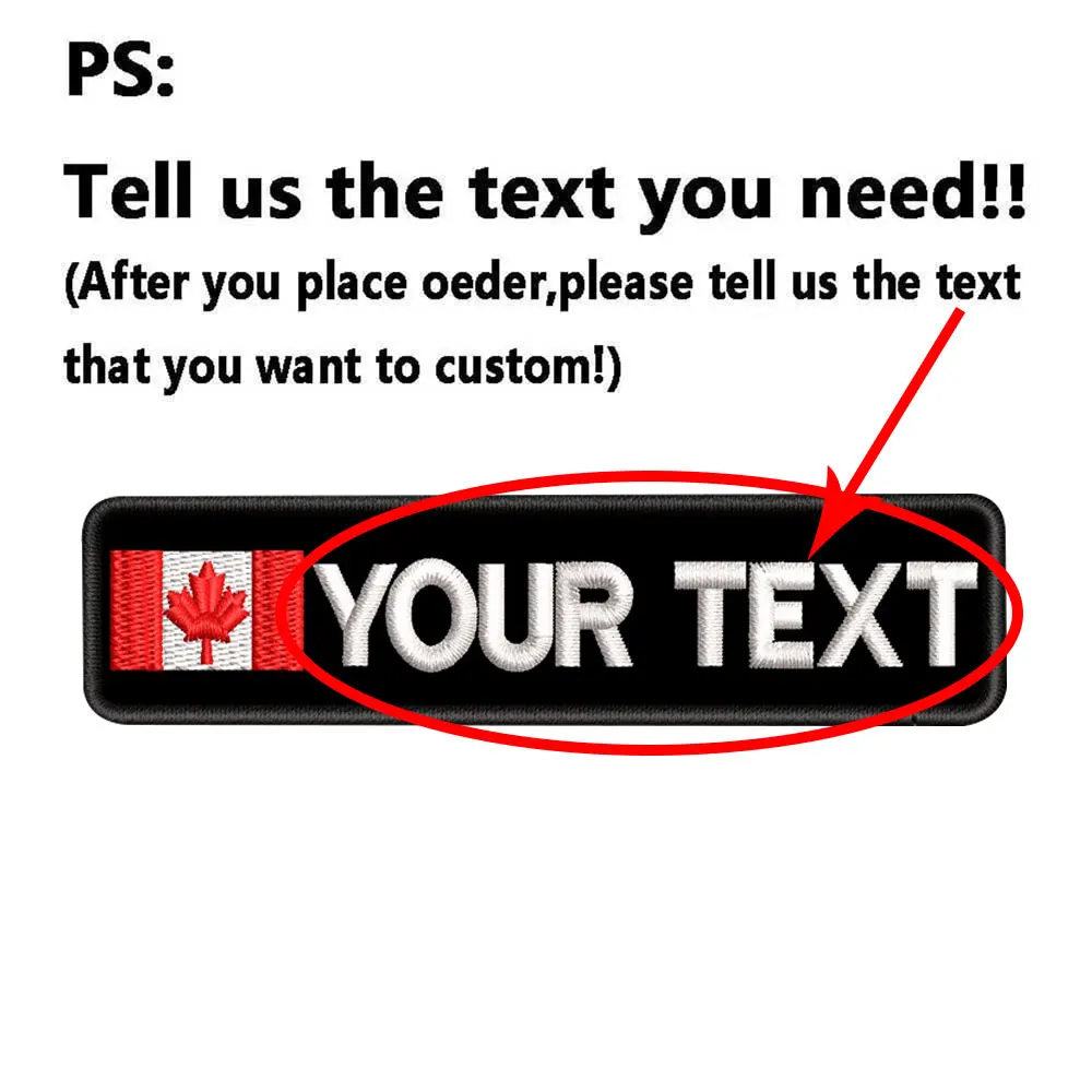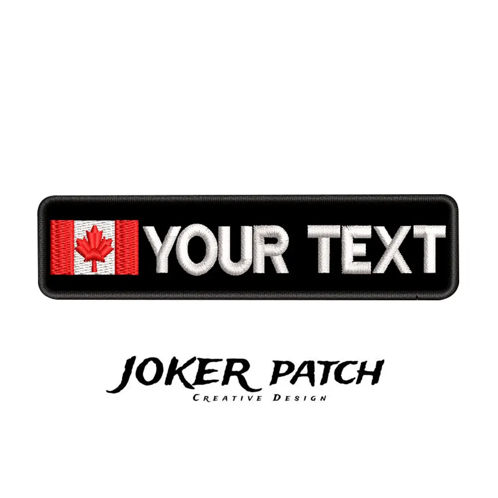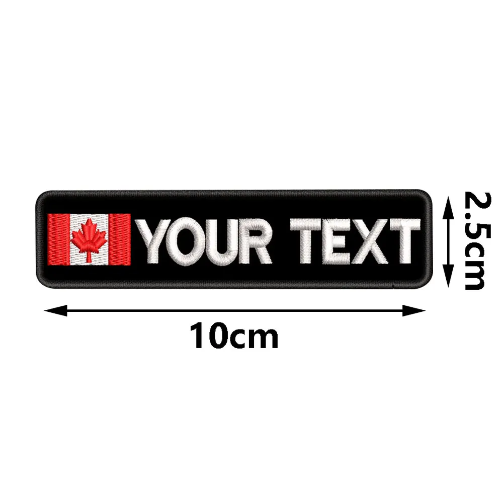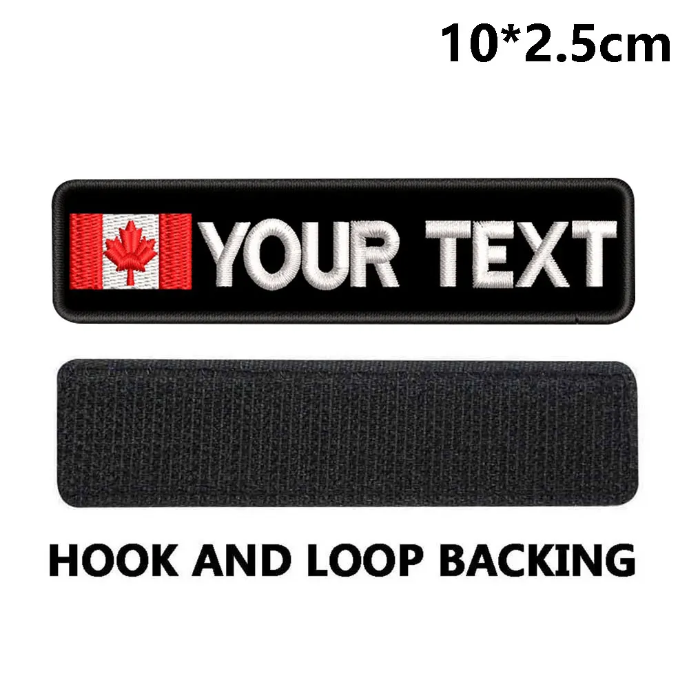 Parche personalizado con nombre de la bandera de Canadá, bordado, texto personalizado, gancho de respaldo para ropa, sombrero y mochila